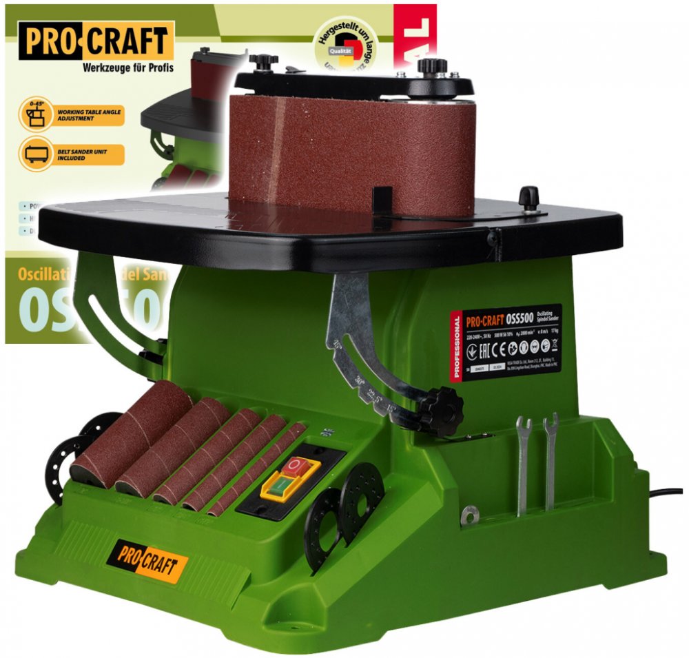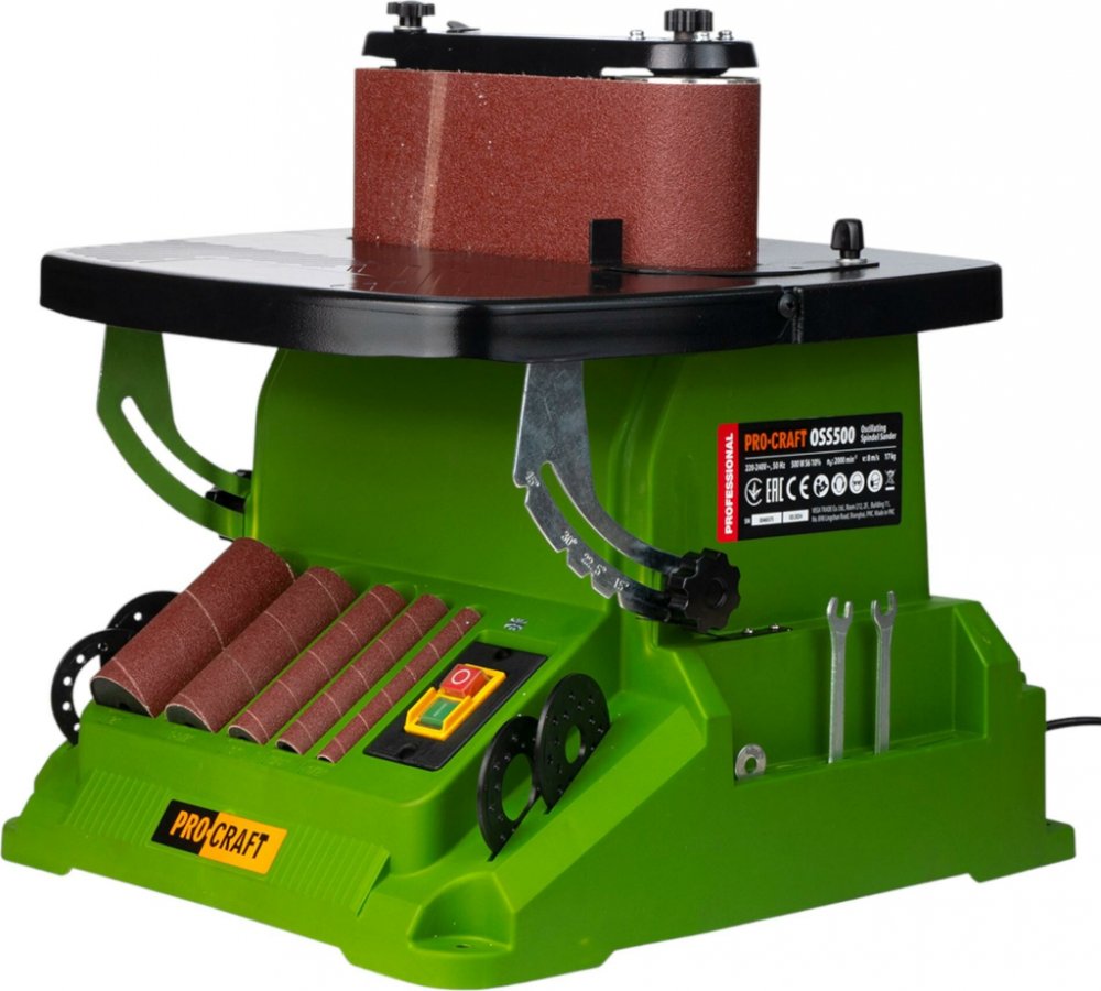 Pásová a vřetenová bruska Procraft OSS500 je určena k zabroušení oblých okrajů, zakřivených nebo nepravidelných hran, vnitřních výřezů výrobku z epoxidu, dřeva a plastu.