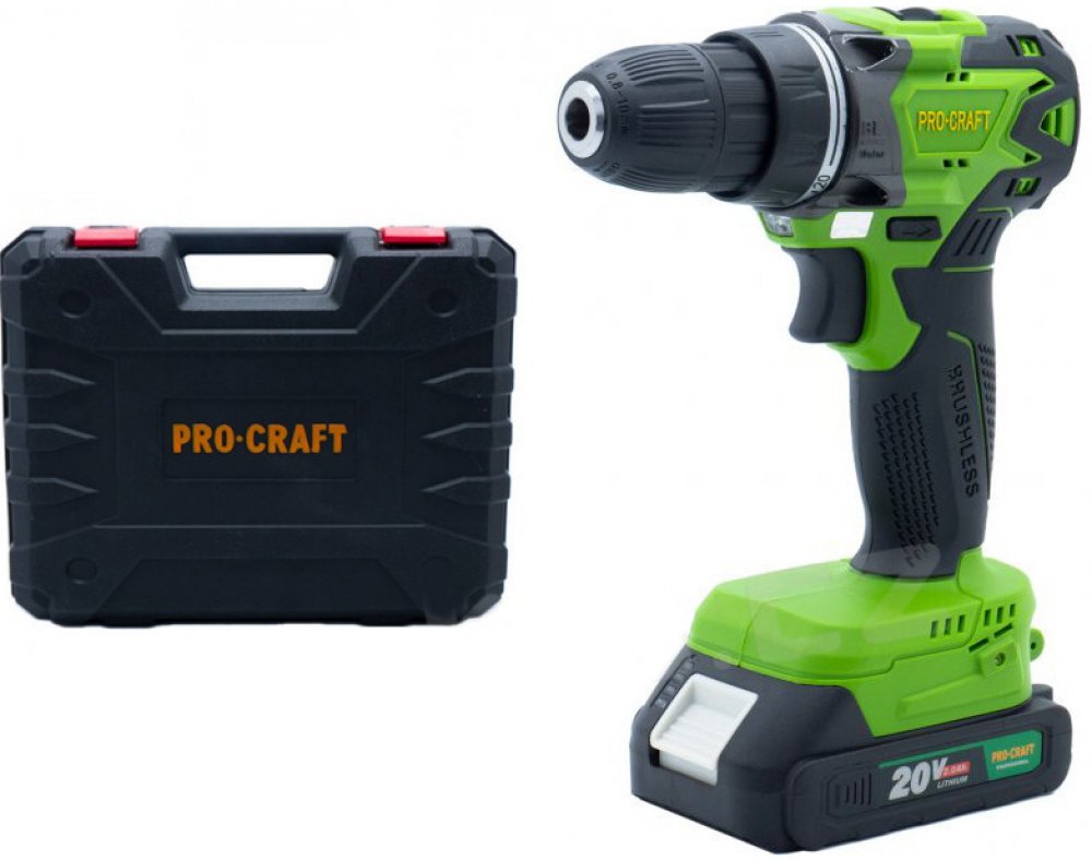 Součástí balení: kufr, 1 baterie 20V 2Ah, nabíječka, Bezuhlíkový motor Integrovaná LED svítilna, 2 rychlosti, plynulá regulací otaček Kroutící moment: 38Nm Otáčky: 0-350/0-1400min Použitelný průměr vrtáku: 10mm Aku vrtací šroubovák Procraft PA20BL 1 baterie | PA20BL 1B