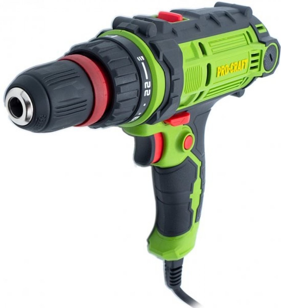 Elektrický vrtací šroubovák Procraft je určen k vrtání do dřeva a kovu a ke šroubování vrutů a šroubů. Možnost nastavení utahovacího momentu ve 22 stupních. Rychloupínací sklíčidlo systém QUICK umožňuje snadné a rychlé upnutí vrtáků a stopkových nástrojů do průměru 10mm. Šroubování na 1. a vrtání na 2. rychlostní stupeň lze provádět s plynulou regulací otáček. Možnost změny směru otáček pravý/levý...