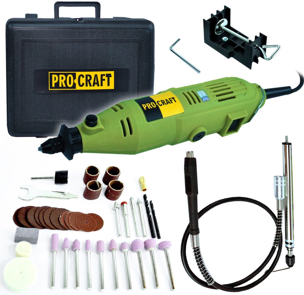 Procraft PG400. Regulace otáček, rychloupínací sklíčidlo Příkon (W) 130 Otáčky (ot./min) 8000-30000 Úchyt (mm) 3,2 Max. použitelný průměr kotoučů: 25 mm Hmotnost (kg) 0,6Bruska přímá s ohebným nástavcem Procraft PG400Součástí balení: ohebná hřídel o délce jednoho metru, 36ks nástavců vrtáky do kovu, plastu a dřeva, plastový kufr, držák. Regulace otáček, rychloupínací sklíčidloPříkon (W) 130 Otáčky (ot./min) 8000-30000Úchyt (mm) 3,2 Max. použitelný průměr kotoučů: 25 mmHmotnost (kg) 0,6