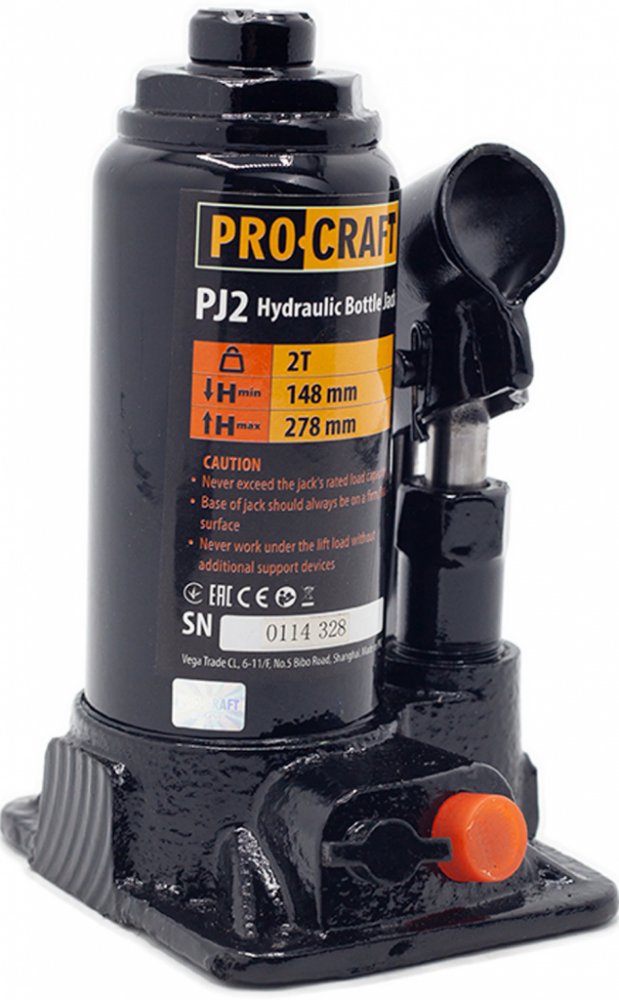 Hydraulický zvedák Procraft PJ2 je určen k zdvihání automobilů, ve stavebnictví a průmyslu. Konstrukce je z kvalitní litiny, vybavena bezpečnostním ventilem. Zvedák má zdvihací kapacitu 2 tuny a zdvihový rozsah od 148 mm do 278 mm a vybaven šroubovací patkou. Pohodlné zdvihání a plynulé spouštění břemen usnadňují práci. Součástí dodávky je tyč. Balení karton.