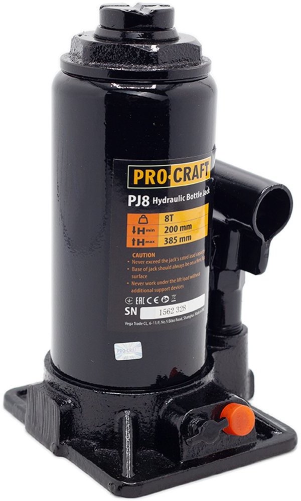 Hydraulický zvedák Procraft PJ8 je určen k zdvihání automobilů, ve stavebnictví a průmyslu. Konstrukce je z kvalitní litiny, vybavena bezpečnostním ventilem. Zvedák má zdvihací kapacitu 8 tun a zdvihový rozsah od 200 mm do 385 mm a vybaven šroubovací patkou. Pohodlné zdvihání a plynulé spouštění břemen usnadňují práci. Součástí dodávky je tyč. Balení karton.