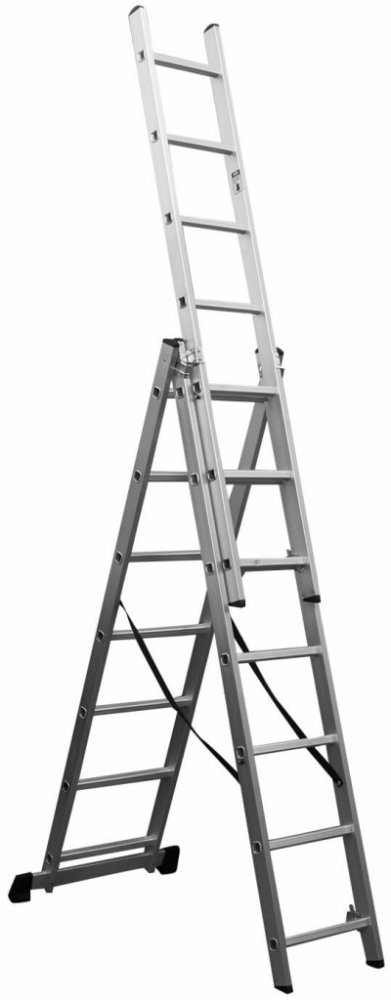 Žebřík hliníkový třídílný Procraft pro všestranné použití z odolného a lehkého hliníku. Vybaven speciálními protiskluzovými nožičky, které zajišťují nejvyšší bezpečnostní standard. Žebřík odpovídá evropským normám bezpečnosti, jsou schváleny a certifikovány dle EN131. Robustní a kvalitní konstrukce s vysokým madlem.