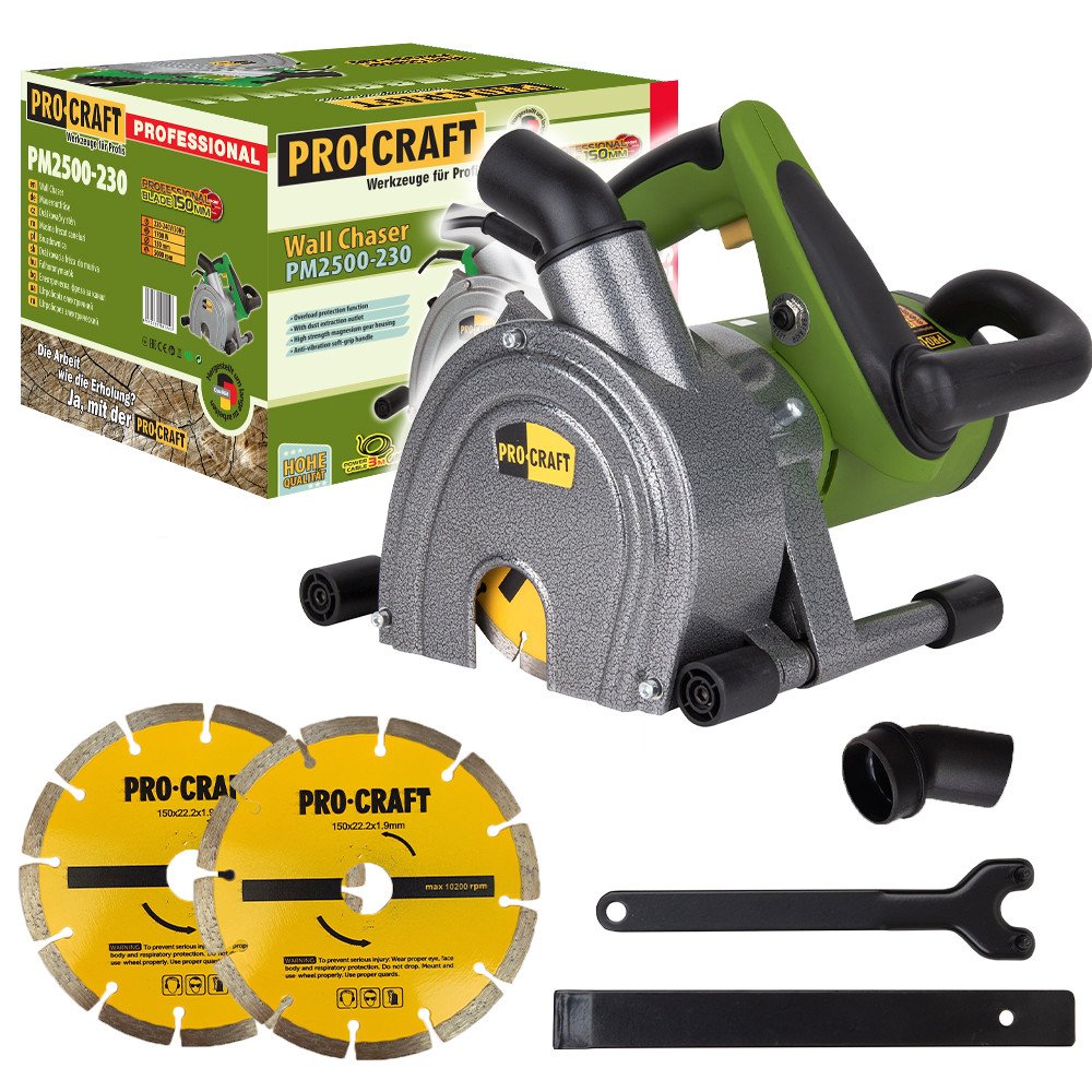 Drážkovací fréza do zdiva Procraft PM2500-230 je určena k drážkován betonu a zdí pro elektricé kabely a vodovodní potrubí;