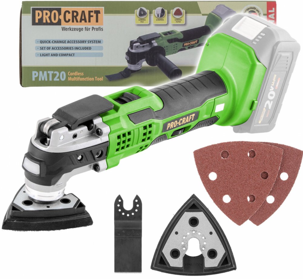 19000 ot/min 1.05 kg Procraft multifunkční 20 V akumulátorové pro obecnou přípravu povrchu pro mobilní úlohy rychloupínání bezkartáčový s nízkými vibracemi a hlučností