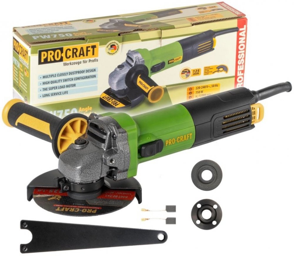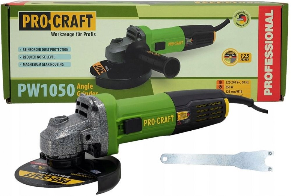 850 W 125 mm 12000 ot/min 1.6 kg Procraft úhlové M 14 850 W 230 V elektrické na kovy pro obecnou přípravu povrchu lehké závitové upnutí s nízkými vibracemi a hlučností