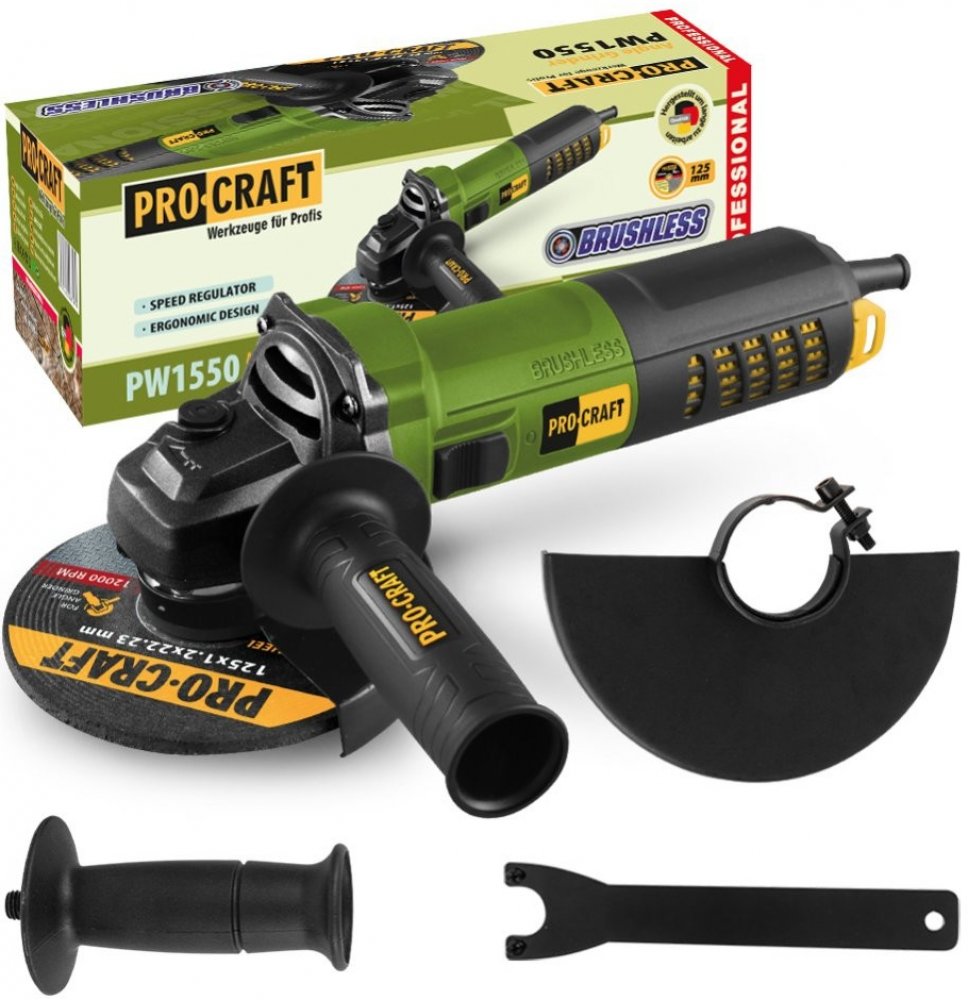 Úhlová bruska Procraft PW1550 je vybavena bezuhlíkovým motorem pro maximální výkon, delší životnost a minimální údržbu. Díky nízké hmotnosti, úzkému tělu a regulaci otáček je ideální pro precizní práci ve stísněných prostorách i ve výškách.