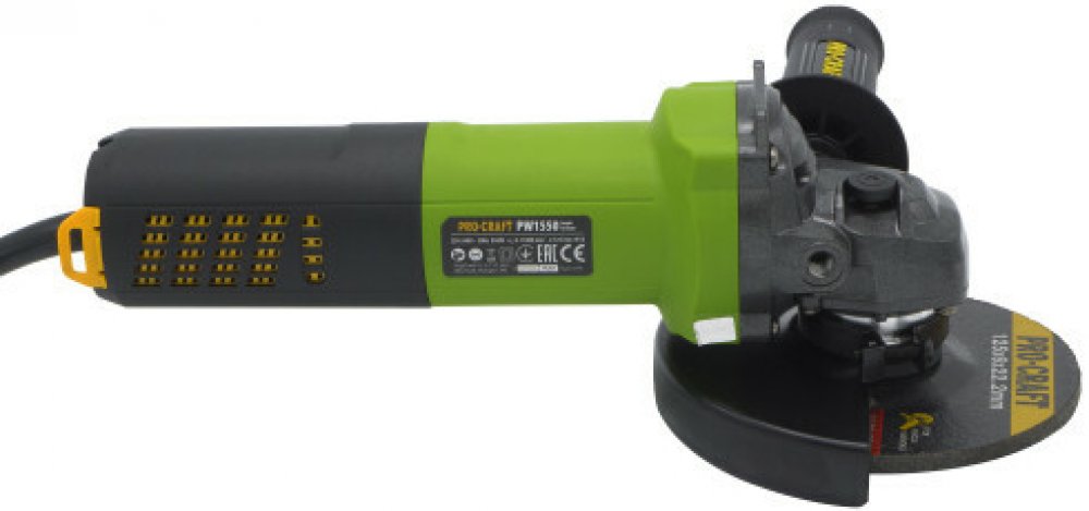 Bruska úhlová Procraft PW1550 + rychloupínací matice RM14, 10x řezný kotouč CD125x1.0b v boxu