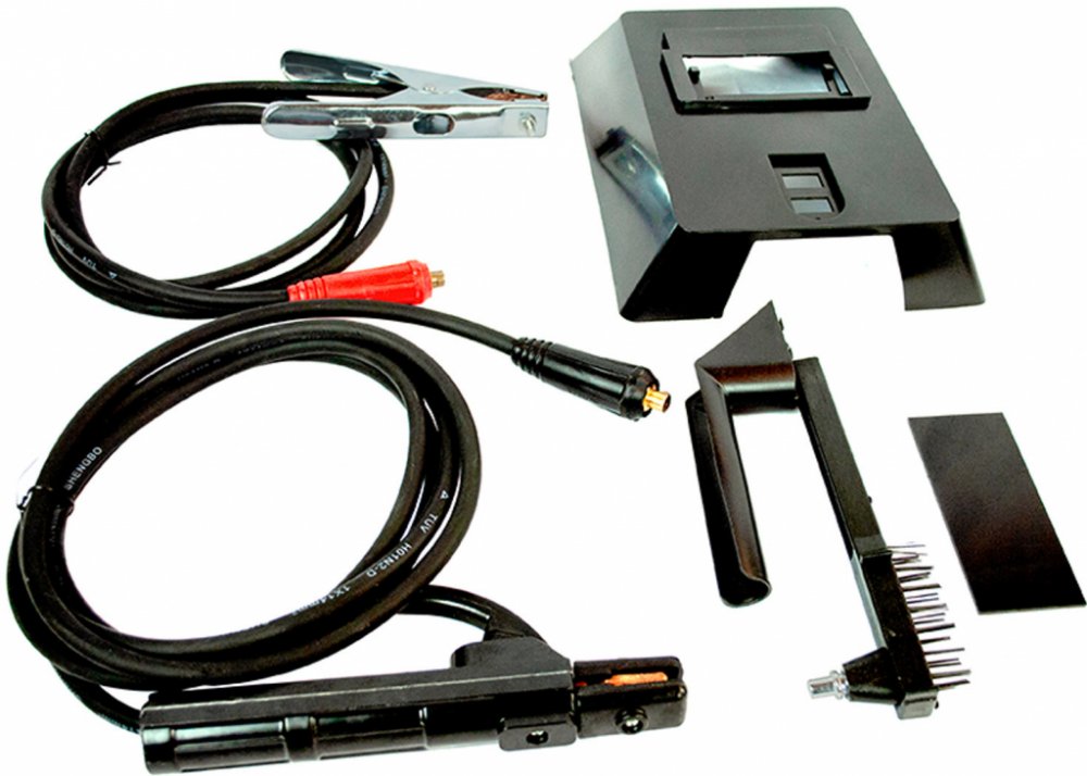 5. Kompletní balení pro okamžité použití: Součástí dodávky je svářečský štít, kabel s držákem elektrod, kabel se zemnícími kleštěmi a drátěný kartáč kombinovaný s kladivem na strusku.