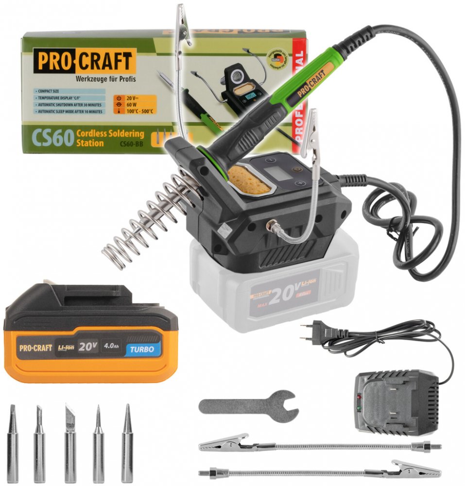 Sada aku pájecí stanice Procraft SCS60 + baterie 20/4 Turbo a nabíječka 20/1