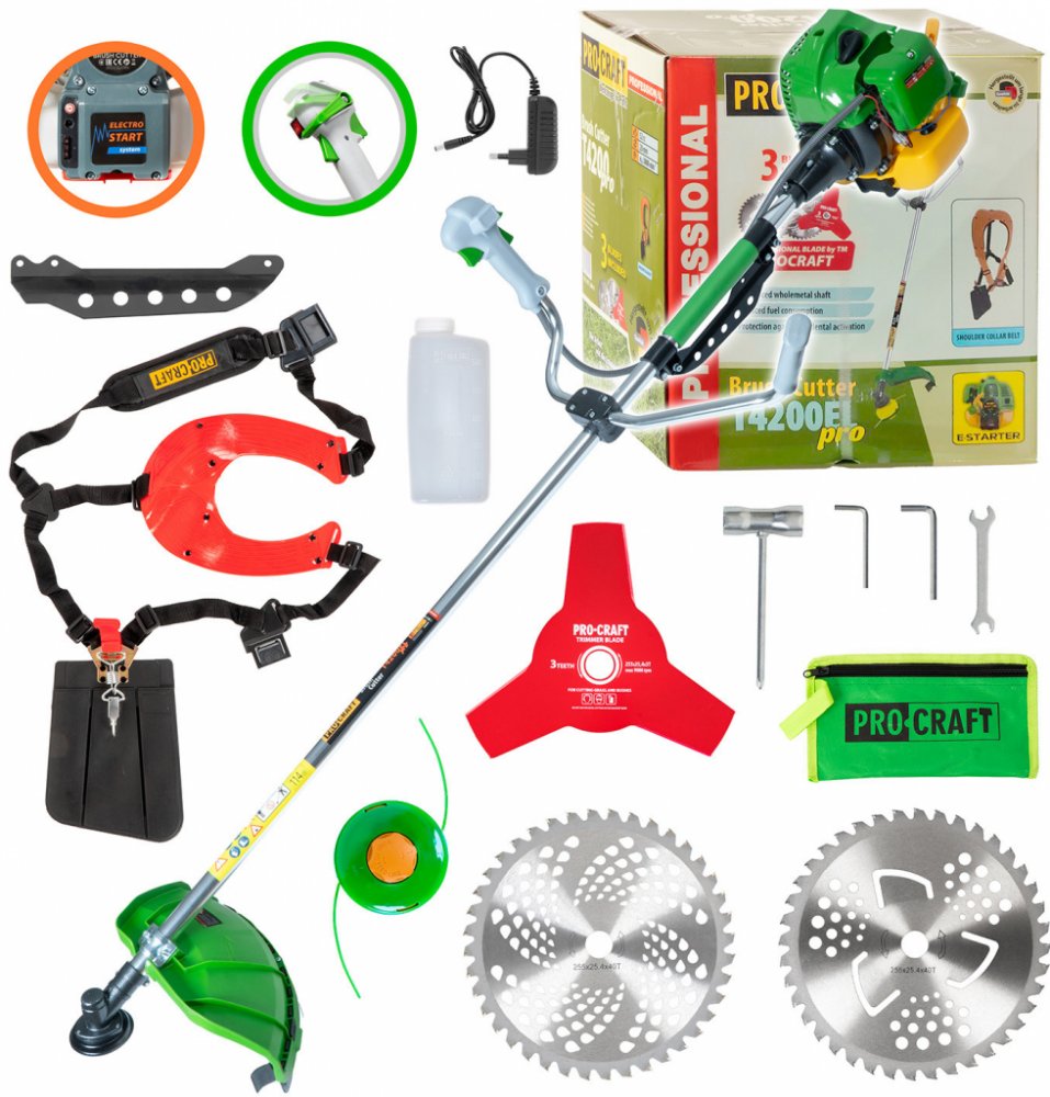 Křovinořez Procraft T4200EL PRO je výkonný a robustní stroj s elektrickým startérem, který zajišťuje rychlé a pohodlné zapínání. Díky elektrickému startéru je spuštění stroje jednodušší a rychlejší, což oceníte zejména při častém spouštění během práce.