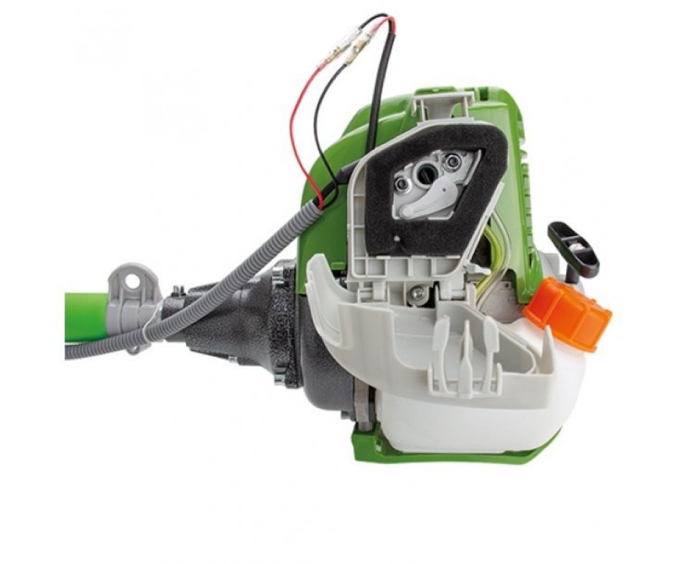 Na rozdíl od dvoutaktních strojů je čtyřtaktní motor tišší, ekologičtější a snadněji startuje. Motor nepotřebuje míchání oleje s benzínem – stačí čistý benzín Natural 95 a motorový olej 10W-30, který se nalévá do samostatné olejové nádržky. Mazání motoru zajišťuje plovákové čerpadlo, díky čemuž křovinořez spolehlivě funguje ve všech polohách.