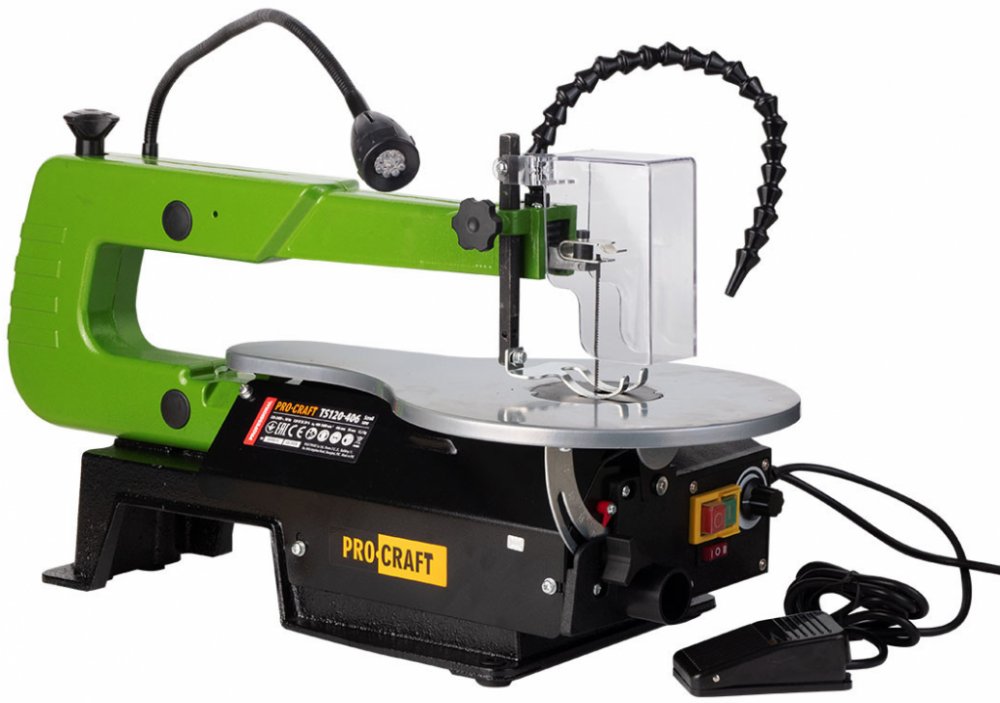 Rámová lupínková pila Procraft TS120-406 je určena pro jemnou mechanickou práci, výrobu hraček, modeláře. Vestavená univerzální ruční brusky umožnuje broušení, odhrotování, frézování, gravírování.