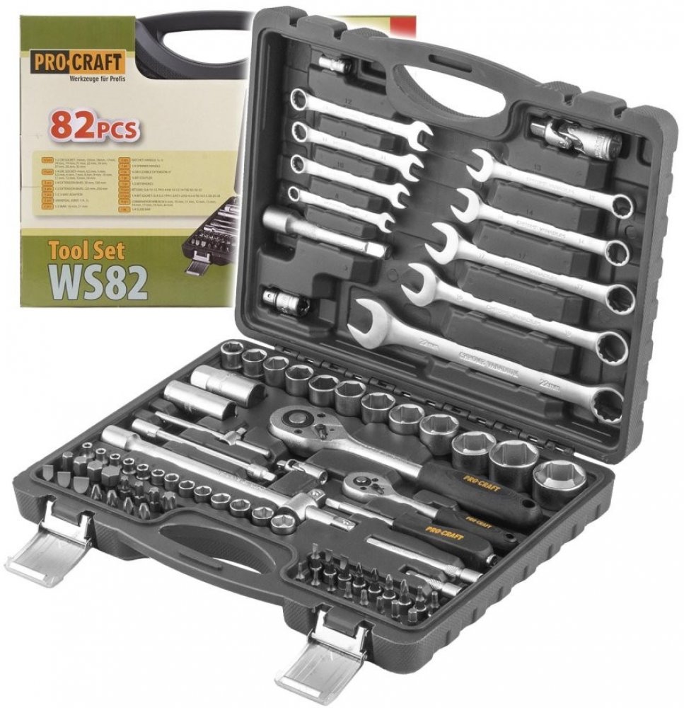 Gola sada Procraft WS-82 – 82 dílůGola sada Procraft WS-82 je všestranný a precizně zpracovaný set ručního nářadí, který poskytuje vše potřebné pro práci v dílně, garáži i v domácnosti. Díky široké paletě nástrčných hlavic, ráčen, klíčů a příslušenství je ideální volbou pro mechaniky, kutily i profesionály, kteří hledají spolehlivou a přehlednou sadu nářadí.Klíčové vlastnosti:Komplexní výbava – 82 dílů: Obsahuje širokou škálu nástavců, klíčů, ráčen a příslušenství pro univerzální využití.Kvalitní materiál: Vyrobeno z odolné chrom-vanadové oceli (Cr-V), která zajišťuje dlouhou životnost a odolnost proti opotřebení.Odolný plastový kufr s kovovým zavíráním usnadňuje dlouhodobé použití a přenášení.Praktické ráčny 1/4" a 1/2": Ergonomické rukojeti umožňují pohodlné ovládání a efektivní práci.Univerzálnost použití: Vhodné pro montážní a opravářské práce na automobilech, motocyklech, jízdních kolech, ale i v domácnosti či dílně.Obsah balení:12× hlavice nástrčné 1/2"(14,15,16,17,18,19,21,22,24,27,30,32)13× hlavice nástrčné 1/4"(4;4,5;5;5,5;6;7;8;9;10;11;12;13;14)2× prodlužovací nástavec 1/4"2× prodlužovací nástavec 1/2"1× adaptér 1/2" pro vratidlo vnější 3/4",1/4" a 1/2" univerzální klouby2× hlavice nástrčné na zapalovací svíčky (1/2")Ráčny 1/4" a 1/2", 24zFlexibilní nástavec k nástrčné hlavici (1/4", 6")1/4" rukojeť šroubovákuVratidla 1/2" a 1/4"15× bity 1/2" (8 mm)17× bity 1/4"9× očkoploché klíče(8,10,11,12,13,14,17,19,22)Ideální použití:Opravy a údržba automobilů, motocyklů a jízdních kolMontážní práce v dílně i domácnostiServisní a montážní práce v terénu díky snadnému transportu kufruUniverzální využití pro profesionály i domácí kutilyProcraft WS-82 je vysoce funkční a kompletní gola sada, která se stane nepostradatelným pomocníkem při každodenních opravách i náročnějších montážích. Nabízí kombinaci spolehlivosti, odolnosti a přehledného uspořádání v praktickém kufru.