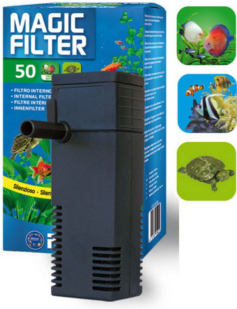 Prodac Magic Filter 50 je kompaktní a tichý vnitřní filtr pro středně velká akvária a želvária s rozprašovačem vody. Vhodné pro obsah vody 20-60 litrů. Oceníte velmi tichý chod. S biologickým a uhlíkovým filtrem. Výkon: 300 l/h.