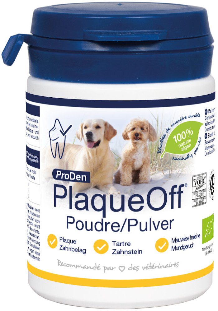 Pokud hledáte způsob, jak snížit zápach z tlamy vašeho psa, ProDen PlaqueOff Bio péče o zuby je produkt s přírodními složkami, který se snadno používá. Stačí přidat několik odměrek prášku do suchého nebo vlhkého krmiva vašeho domácího mazlíčka a můžete snadno přispět k jeho každodenní zubní hygieně. Prášek je vyroben z ekologicky pěstovaných řas. Vyznačuje se zvláštní chutí a nízkým obsahem kalorií. Pomáhá snižovat tvorbu zubního kamene a plaku. ProDen PlaqueOff Bio péče o zuby může také pomoci v boji proti stávajícímu zubnímu plaku a snížit nepříjemný zápach z úst. ProDen PlaqueOff Bio péče o zuby: Dentální péče v prášku pro psy Pro každodenní čištění zubů: podporuje zubní hygienu vašeho psa, lze podávat každý den Proti zubnímu plaku: vyvinuto pro boj proti zubnímu plaku a kameni, může přispět ke snížení tvorby zubního plaku a nového zubního kamene Pro svěží dech: může pomoci proti zápachu z tlamy Snadné použití: jednoduše přimíchejte do krmiva 100% přírodní: jako složka pouze organické řasy, speciální příchuť Velmi nízký obsah kalorií Součástí balení je odměrka