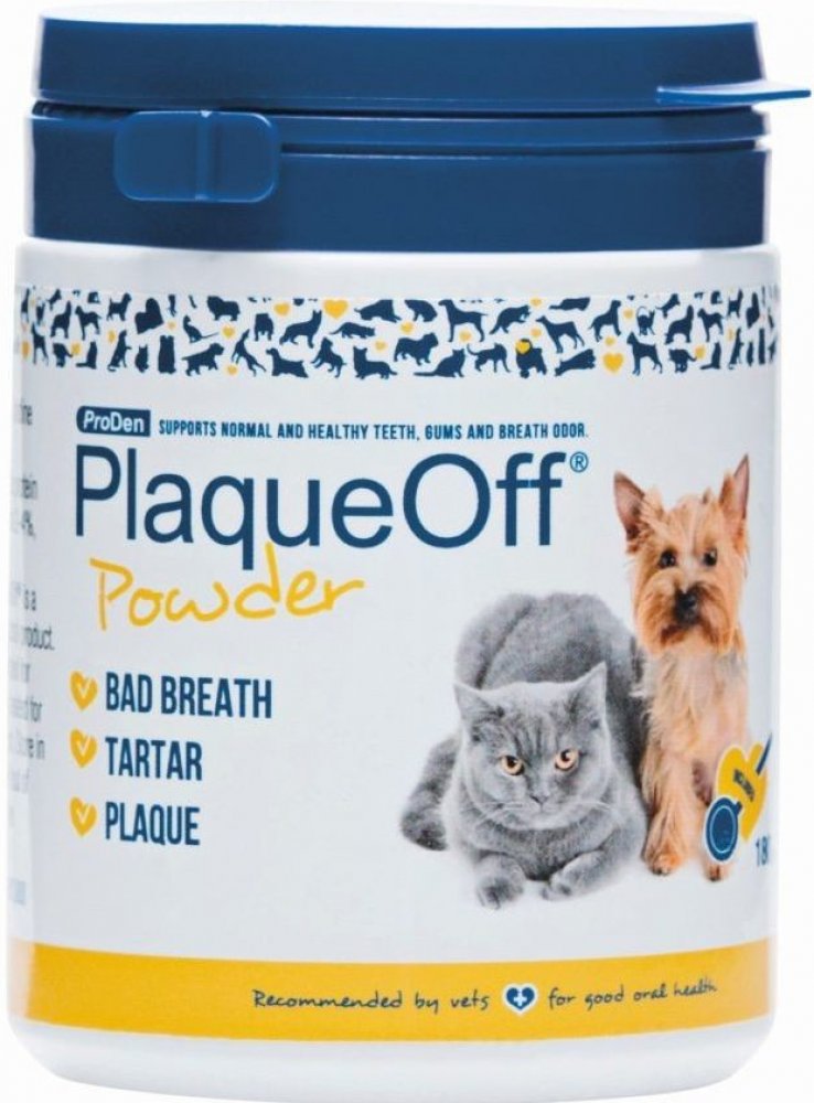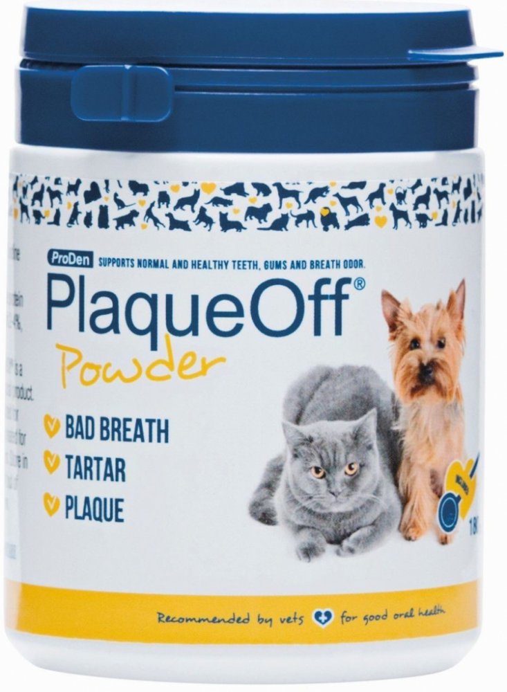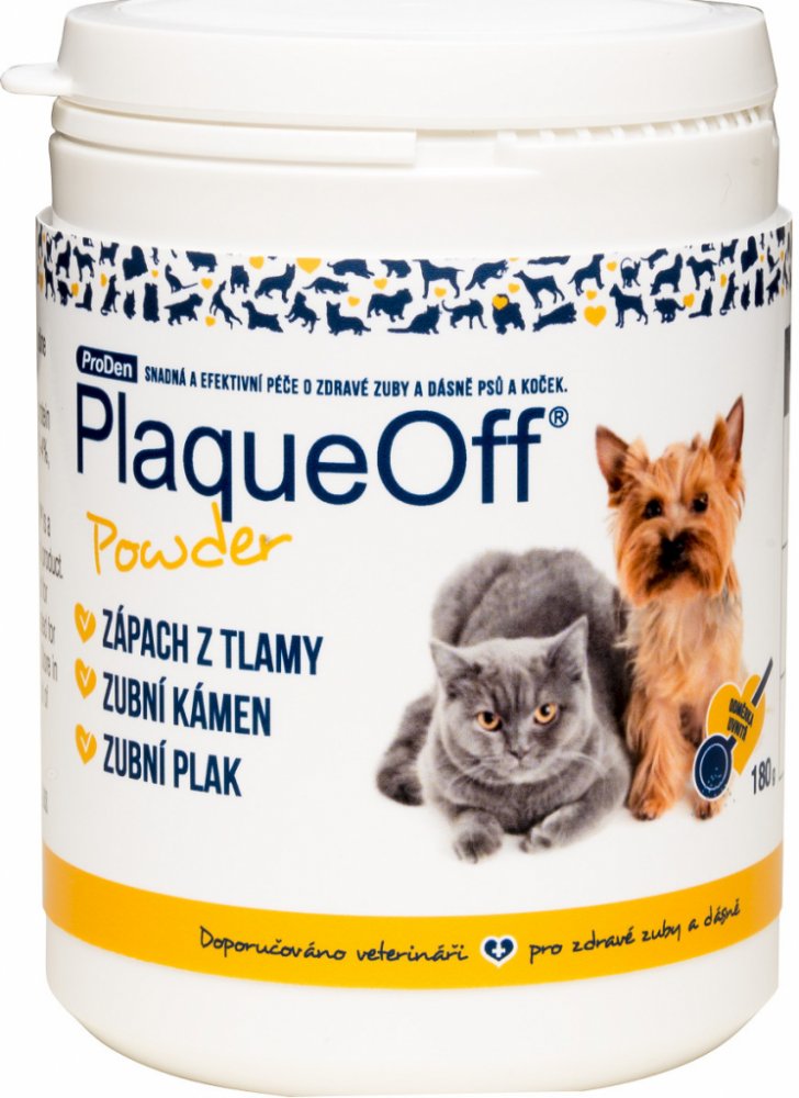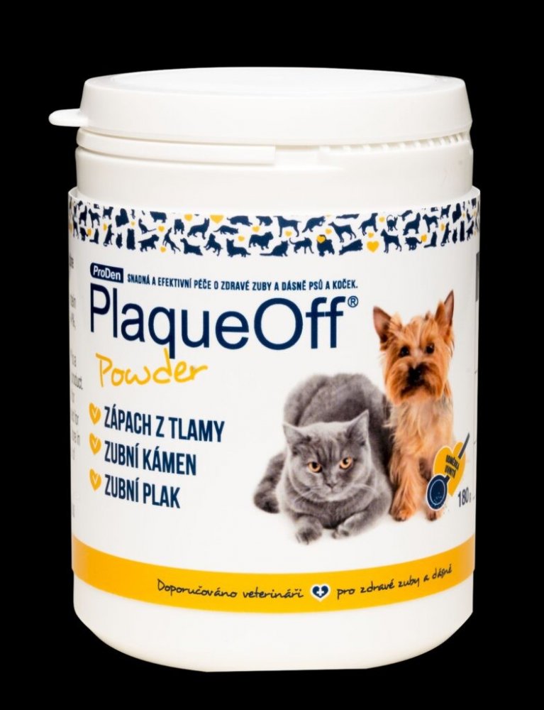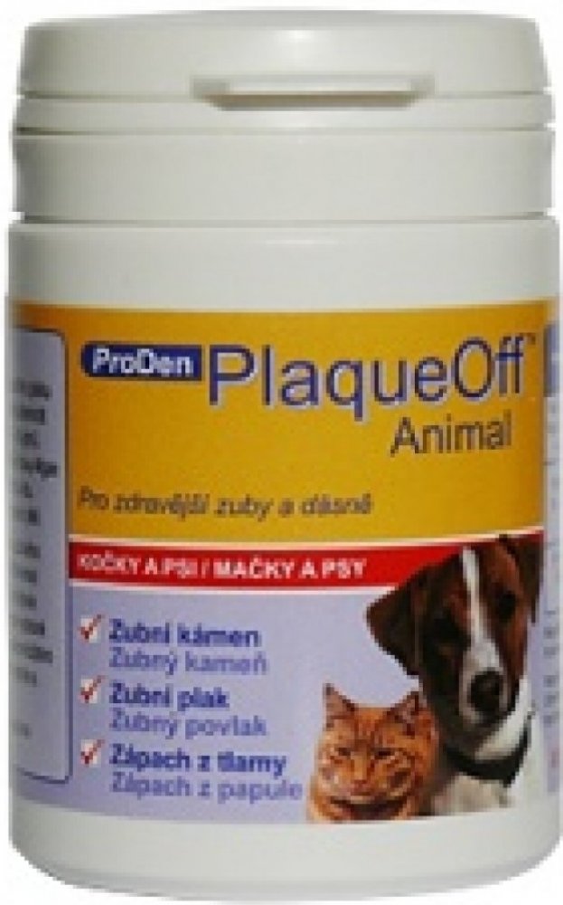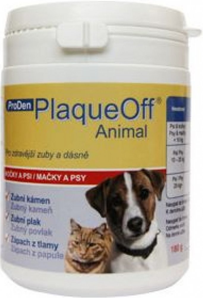 ProDen PlaqueOff Animal je inovační přípravek v péči o zuby a dásně domácích mazlíčků. Při denním užívání významně pomáhá v boji se zubním plakem, zubním kamenem a zápachem z tlamy.