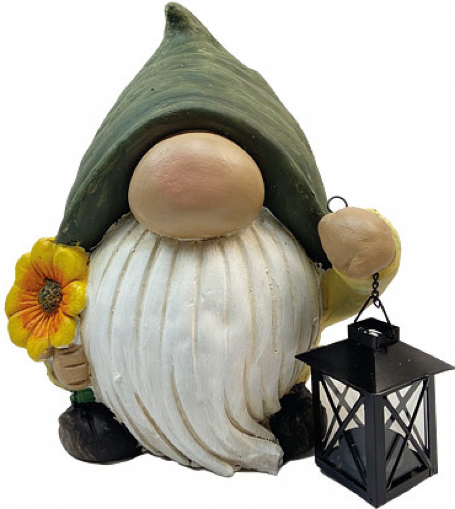 Skřítek s lucernou a květinouZahradní skřítek s květinou a s lucernou je krásný doplněk, který si můžete představit ve vaší zahradě nebo na okenním parapetu. Tento malý skřítek může být příjemným prvkem a přidá do vašeho prostoru trochu magie. Drží květinu v jedné ruce a lucernu v druhé. Jeho šaty jsou v odstínech zelené a žluté, aby se ladily se zahradou.Parametry dekorace: materiál: figurka: ker...