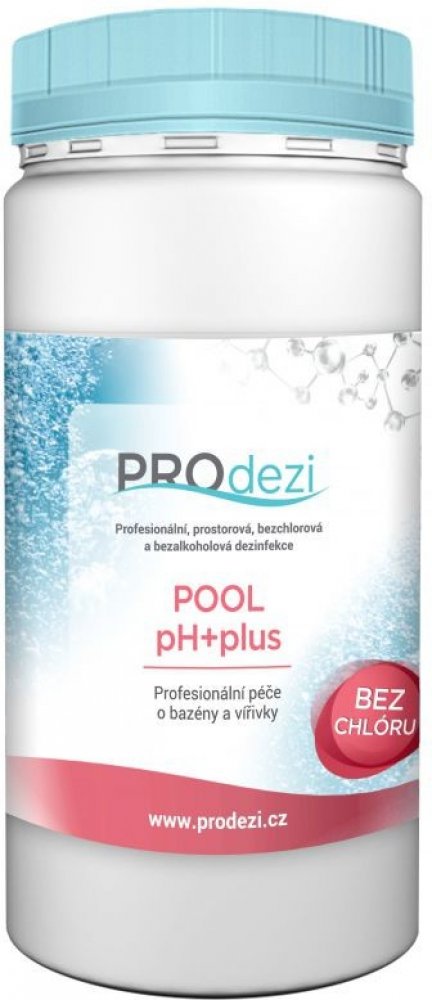 PROdezi POOL pH Plus Je přípravek na zvýšení pH bazénové vody a vody ve vířivce. Ideální hodnota pH při používání bezchlórové dezinfekce vody je 6,8-7,6.