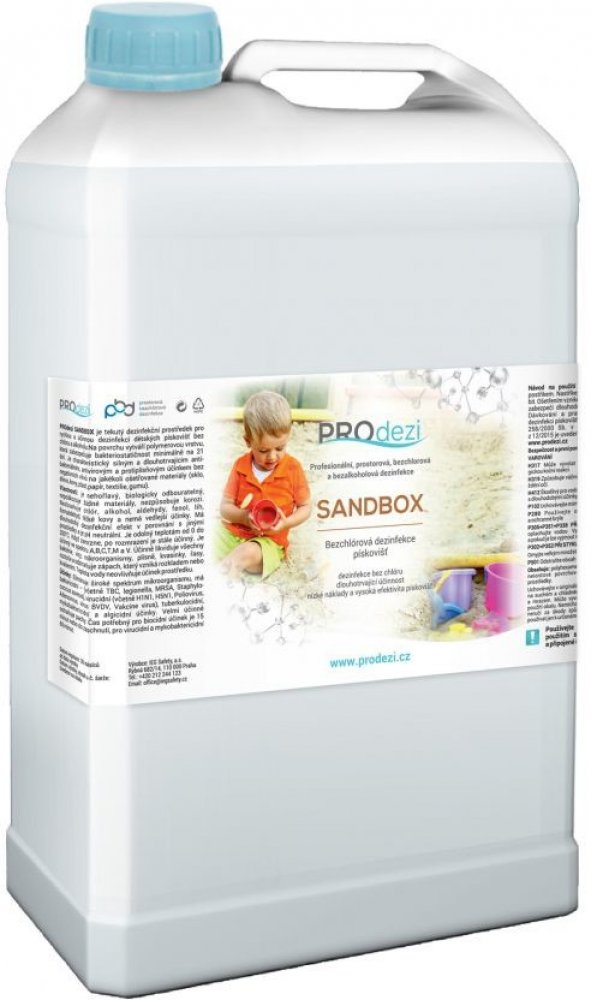 PROdezi SANDBOX je polymerový prostředek bez obsahu chlóru. Účinnosti prostředku byly laboratorně doloženy společností Chemila s.r.o., Hodonín. Prostředek se používání k eliminaci bakteriálního znečištění, je bezpečný a v použitých koncentracích je šetrný k životnímu prostředí.
