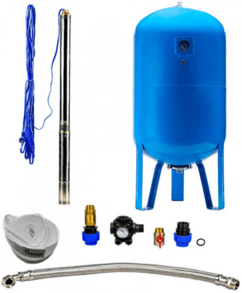 Domácí vodárna s ponorným čerpadlem 3Ti-24/150 l obsahuje: