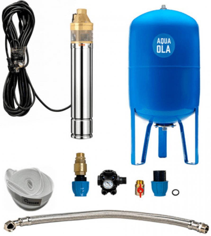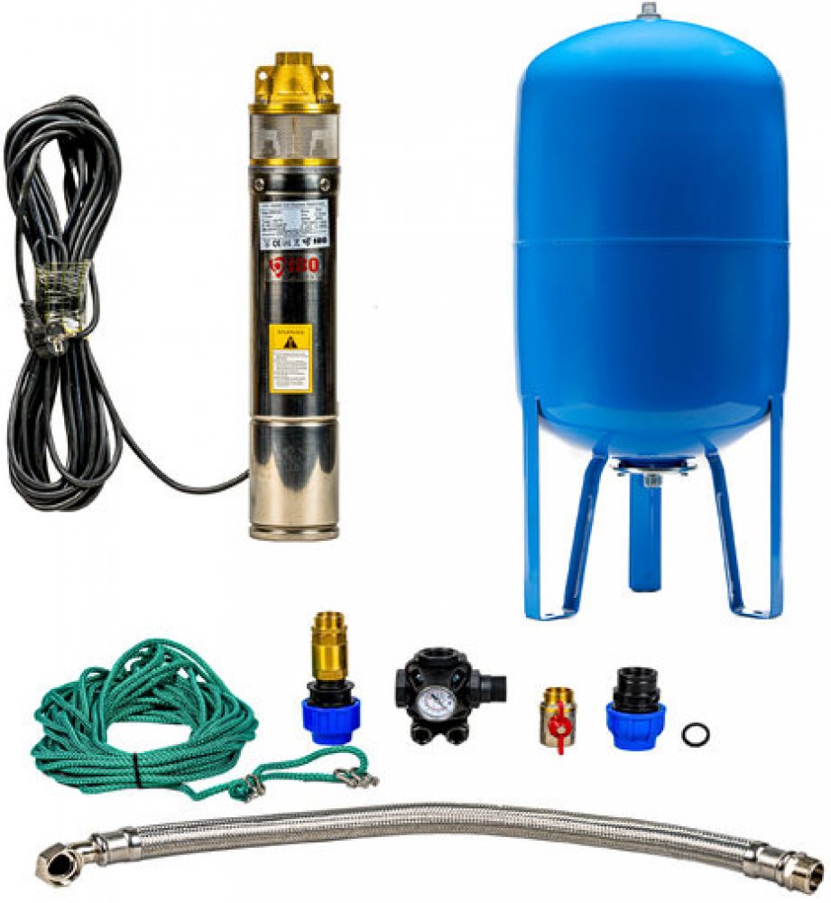 Domácí vodárna s ponorným čerpadlem SKM 100/80L je vhodná pro zásobování vodou z vrtu nebo studny pro rodinné domy, zahrady a chaty. Všimněte si prosím související produkty. U každé domácí vodárny jsou produkty, které se nejčastěji používají a které můžete potřebovat. Při výběru si samozřejmě můžete vybrat také jiné produkty z naší široké nabídky, které vám vyhovují nejvíce. Pokud vám více vyhovuje použít tlakovou nádobu ležatou, stačí, když v objednávce v části poznámky uvedete tento fakt. Cena domácí vodárny se nezmění. Domácí vodárna s ponorným čerpadlem SKM 100/80L obsahuje: čerpadlo SKM 100 tlaková nádoba stojato-ležatá 80L s manometrem tlakový spínač PC-2 vsuvka 1" zpětná klapka 1" spojovací hadice 80cm přechodový kus s vnějším závitem 32x1" přechodový kus s vnitřním závitem 32x1" kulový ventil MF, M 1"