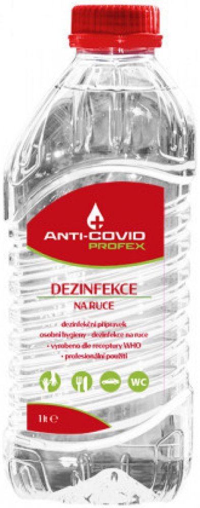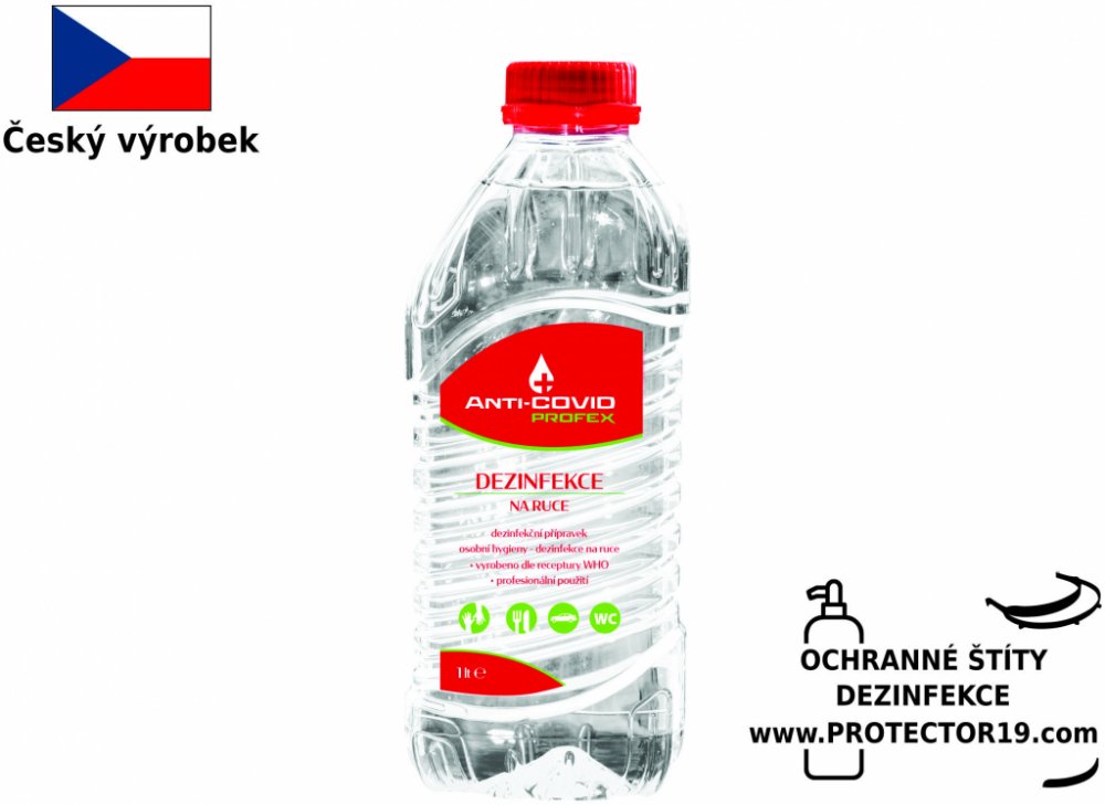 Dezinfekční přípravek, dezinfekce rukou. Možno použít i na povrchy. Vyrobeno na základě doporučené receptury WHO. Obsah balení 1 L (V nabídce také 5 L balení). Přípravek ničí: Bakterie, plísně, viry (Acinetobacter, Pseudomonas, Klebsiella,Staphylococcus aureus, Kocuria rhizophila, Candidaalbicans, coronavirus, MERS,SARS-CoV-2, influenza A virus H1N1, MHV, TGEV a.i.) Návod k použití: Přípravku použijte dostatečné množství (2x3 ml), aby pokryl celouplochu. Naneste na dlaně a rozetřete po celých rukou a zápěstích; zvláštní pozornostvěnujte kůžičce kolem nehtů a záhybům v kůži. Může se lišit podle velikosti rukou astavu kůže. Dobře vtírejte, dokud není kůže suchá. Tento postup by měl trvat přibližně1 minutu. Použití maximálně 10 krát denně. Nepoužívat na poraněnou kůži nebo přivýskytu kožních onemocnění. Bezpečnostní list: DF partner bezpecnostni-list-anti-covid-cz Vlastnosti výrobku: Souhrn_vlastností_biocidního_přípravku_Anti-COVID_typ_1 (3) Foto ilustrační.