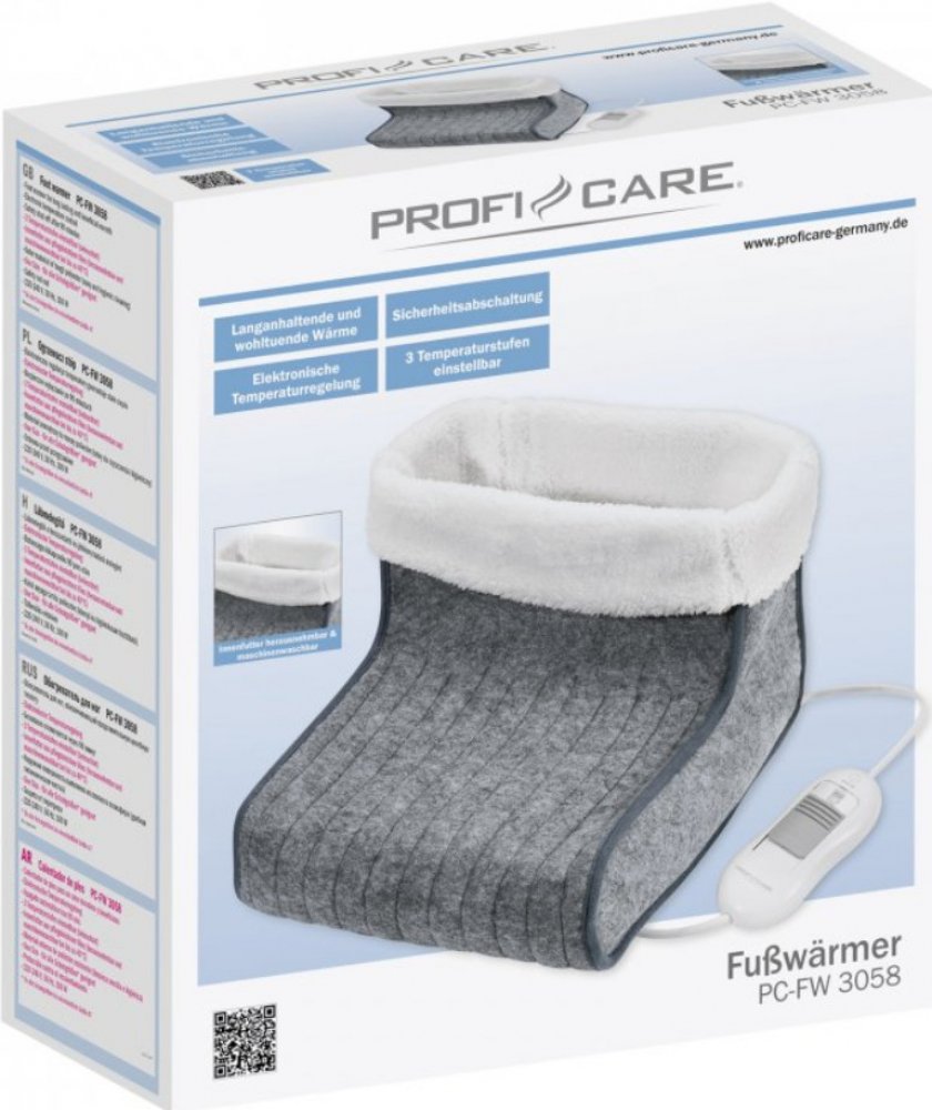 Vyhřívaná bota FW 3058 od značky ProfiCare skvěle poslouží ať už jako dárek, nebo příjemný doplněk do mrazivých zimních večerů. Uvnitř boty se vytvoří příjemné a dlouhodobé teplo a zahřeje tak nohy, což má pozitivní dopad na lidský organismus. Její teplota lze elektronicky nastavit do 3 úrovní teplot. Vyhřívaná bota se kvůli bezpečnosti po 90 minutách vypne. Vhodné do velikosti nohy číslo 46.Vnitřní část je vyrobena z materiálu fleece, je snímatelná a lze prát v pračce. Vnější část je z odolného polyesteru. Při výběru se nemusíte obávat výběru špatné velikosti - existuje jen jedna univerzální pro všechny velikosti. Vyhřívaná bota je vybavena ochranou proti přehřátí. Napájení je 220-240 V, 50 Hz a výkon 100 W.