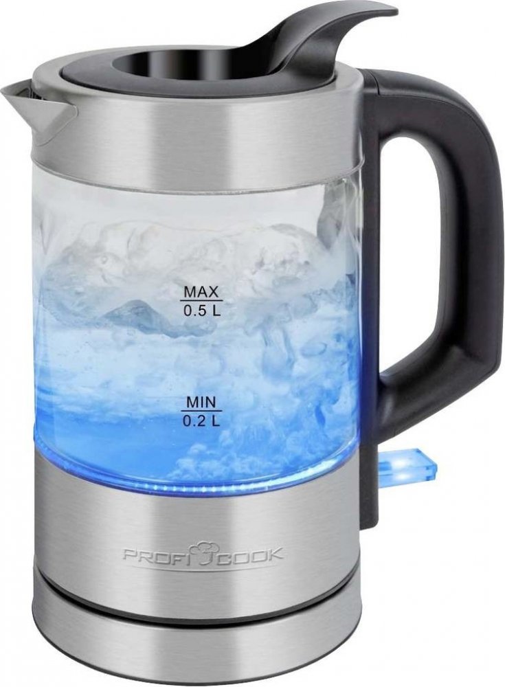 0.5 l 1100 W ProfiCook skleněné skleněné nerezovné, skleněné 0.75 kg stříbrné s běžnou hubicí pantové víko s tlačítkem kompaktní (pro 1–2 osoby) 20.7 cm