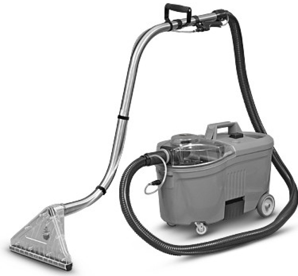 Pro střední plochy pro živnostenské použití i pro použití v domácnostech. Nádrž na čistou vodu s filtrační vložkou umožňuje velké pracovní intervaly a chrání čerpadlo před znečištěním. Kompaktní a robustní kryt z plastu - nárazuvzdorný, odolný proti prasknutí, snadné přenášení. Dvě velká kola pro bezproblémovou přepravu a dvě malá řídící kolečka pro velkou pohyblivost stroje. Tlačítka pro nástřik a odsávání se nachází na horním díle stroje - bezproblémová obsluha. Snadno snímatelný, průhledný sací kryt pro optickou kontrolu. Vyjímatelný modul čerpadlo/turbína uložený v gumovém obložení. Nádrž na špinavou vodu, snadno vyjímatelná. Zbytková vlhkost 3,5 %.
