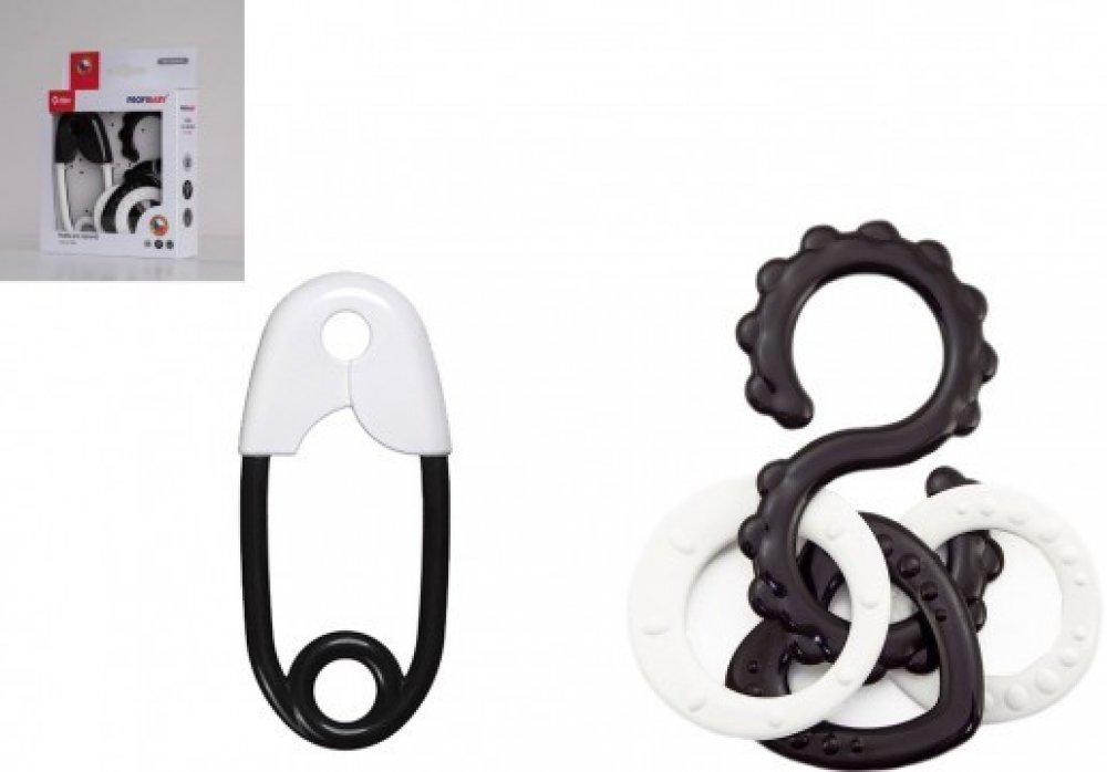 Vyberte si na ProLucinku.cz z více něž 20 000 produktů. Dárek ke každé objednávce. Chrastící černobílý plastový set, pro nejmenší děti, obsahující tvary v podobě osmičky, kancelářské sponky a srdíčka. Tato barevná kombinace dokonale stimuluje zrak dítěte, které ještě nerozlišuje barvy.