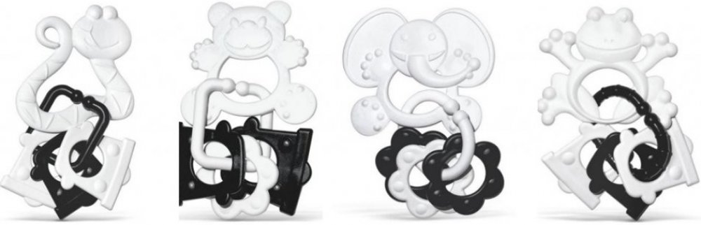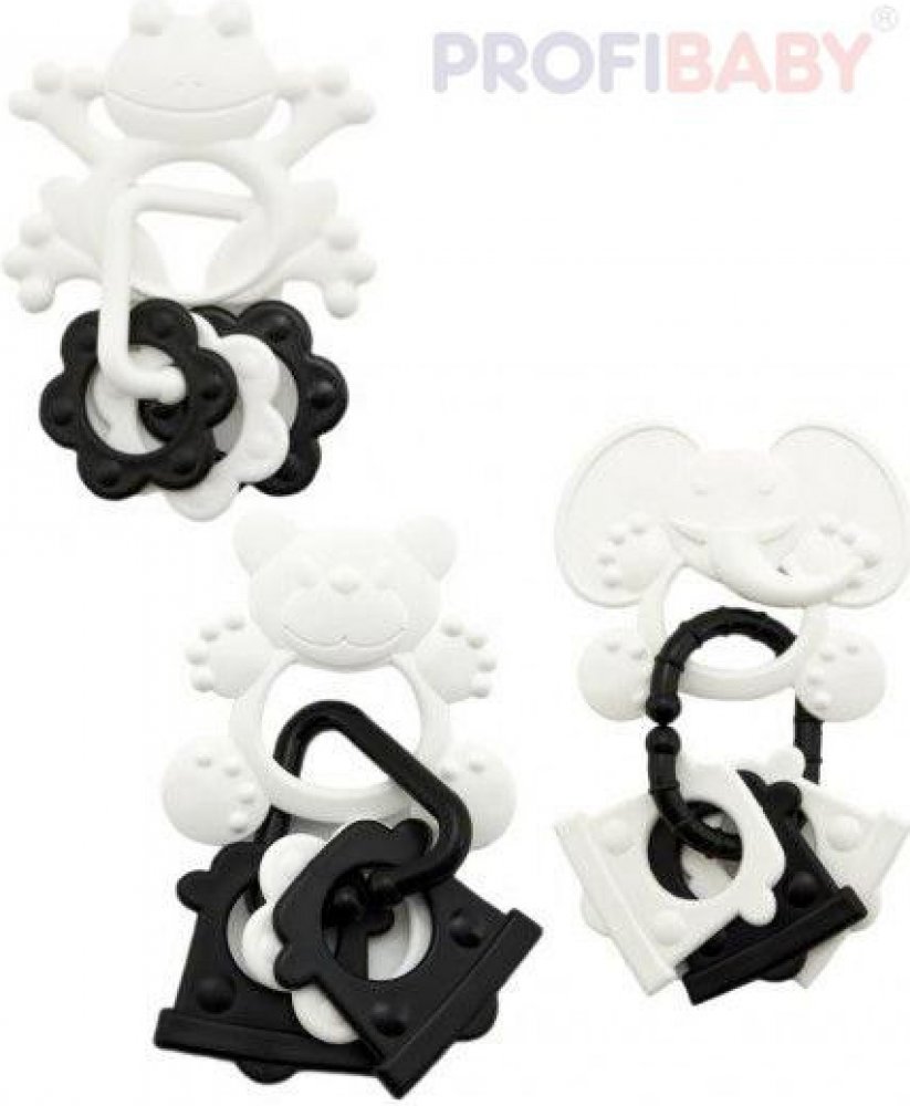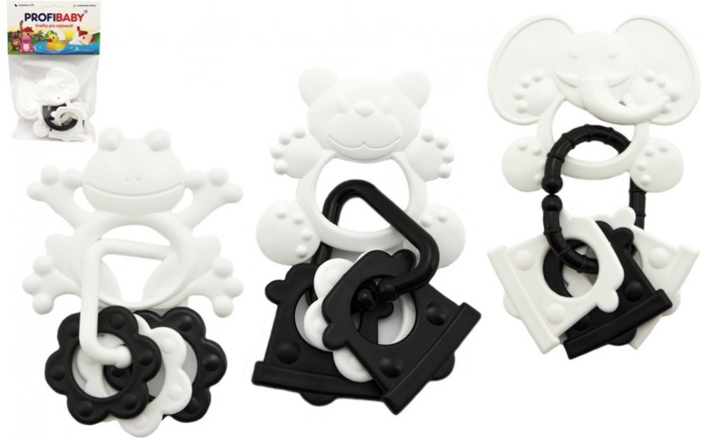 Vyberte si na ProLucinku.cz z více něž 20 000 produktů. Dárek ke každé objednávce. Černobílé kousátko pro nejmenší děti, v podobě bílého plastového zvířátka a tří přívěsků ve tvaru zvonečku nebo kvítku, zavěšených na klipu. Hračka ve čtyřech variantách provedení zvířátka a různých mixech přívěsků. Baleno v sáčku.