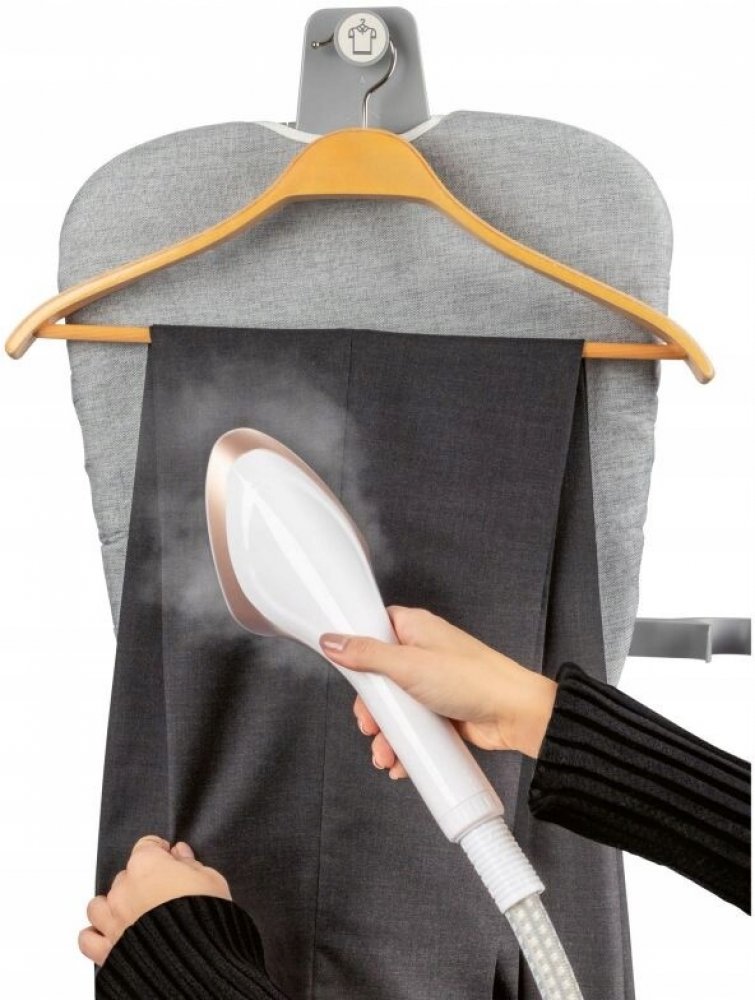 Zařízení umožňuje žehlení jak vertikálně, tak horizontálně – ideální pro oblečení, závěsy, bundy nebo jemné látky.