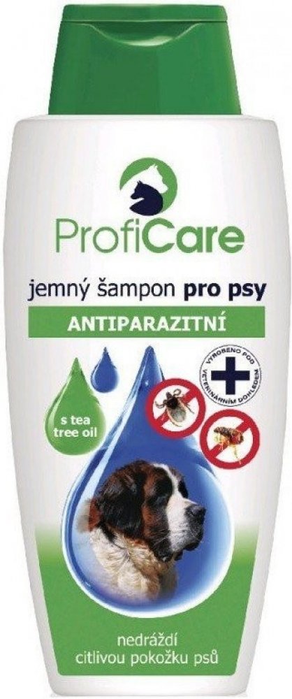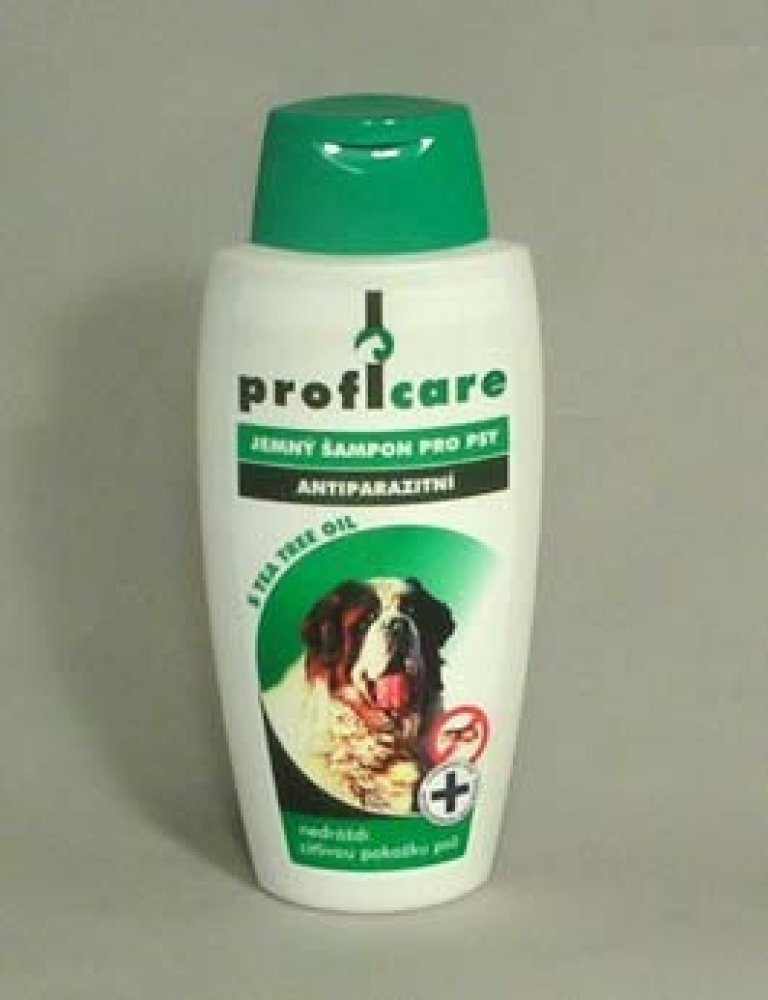 Šampon Proficare se silným a dlouhodobým účinkem proti zevním parazitům. Účinné látky spolehlivě hubí blechy a vši a napomáhají odpuzovat klíšťata a bodavý hmyz. Obsažený čistý australský čajovníkový olej tiší svědění podrážděné kůže a přispívá k hojení drobných zánětů.