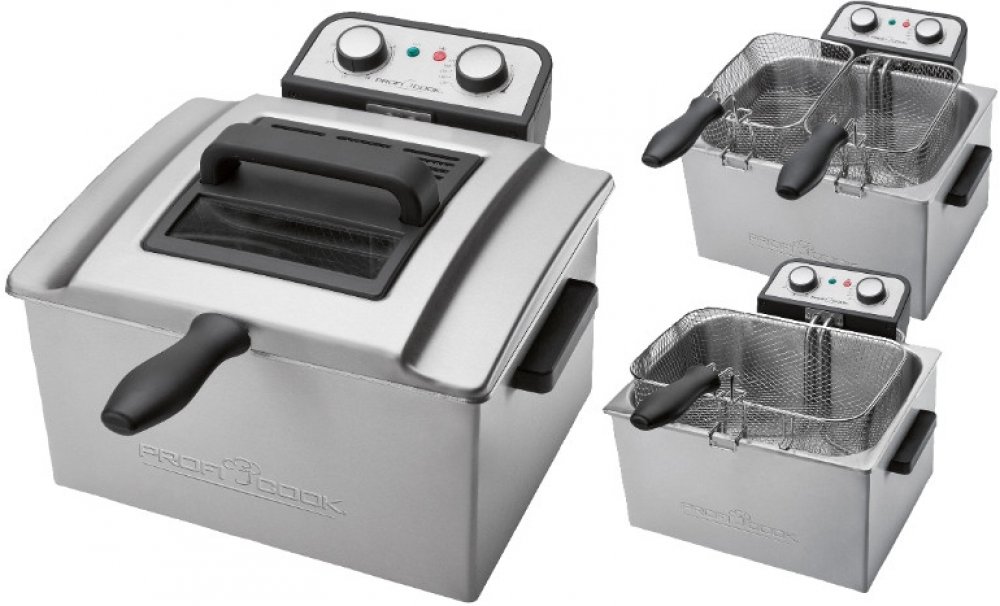 Profesionální fritéza se 2 menšími koši a 1 velkým košem pro různé druhy potravin. Hlavním materiálem pro výrobu byla nerezová ocel, ze které je vyroben plášť, víko, topné těleso a nádoba na olej. Výhodou je, že topné těleso je ponořeno přímo v oleji. Ohřev je tak velice rychlý a bez zápachu. Kapacita nádoby na olej je 5 litrů a pro pohodlnější čištění lze vyjmout. Teplotu fritování lze nastavit v rozmezí od 130 do 190 °C. Časovač lze nastavit až na dobu 30 minut. Fritéza je vybavena filtrem proti zápachu a výparům, dále pak ochranou proti přehřátí. Napájení je 230 V, 50/60 Hz a výkon 3 270 W max.