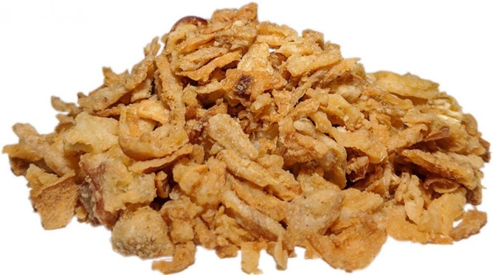 Jedinečná smažená cibule zlatohnědé barvy s nízkým obsahem tuku, bez soli a mouky.