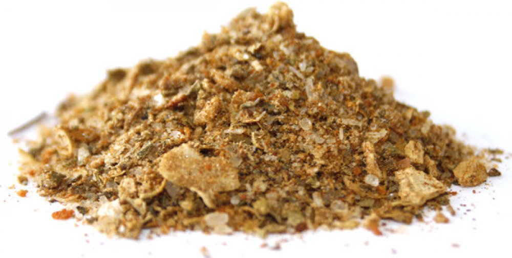 Složení: sůl 40%, cibule, paprika sladká, hořčice bílá, cukr, koriandr, chilli, majoránka, provensálské koření (oregano, rozmarýn, bazalka, tymián, majoránka, saturejka, estragon, šalvěj, máta, levandule), oregano, libeček, česnek (oxid siřičitý - přirozeně obsažený), pepř černý, paprika červená drcená, řepkový olej.