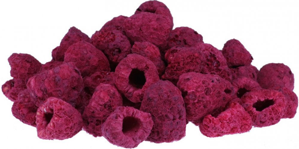 Lyofilizace: je proces, při kterém jsou maliny prudce zmraženy a následně je zmražená voda uvnitř ovoce vypařena. Ovoce si díky tomuto speciálnímu postupu udržuje vlastnosti své čerstvé podoby a to bez jakýchkoliv přidaných látek. Zůstává jeho objem, barva, textura a chuť i maximální obsah vitamínů a minerálů, které by byly při sušení tepelnou cestou ...