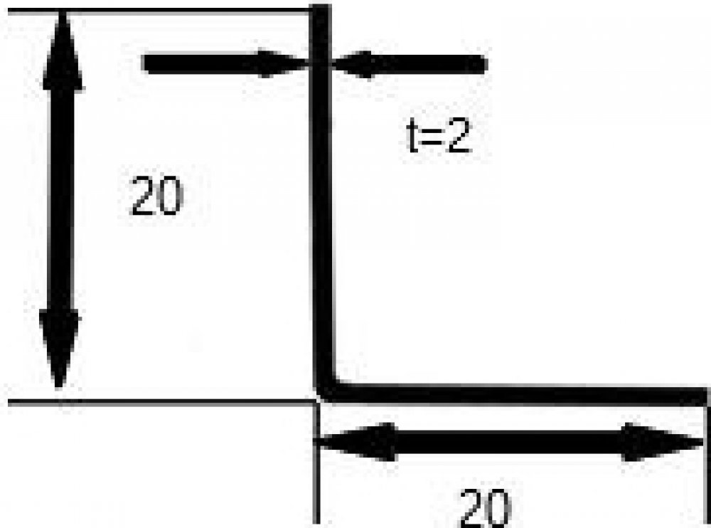 Profil L 20 x 20 x 2 mm Profil otevřený svařovaný černý L 20x20x2 mm . Profily řežeme i pod úhlem. Výška profilu 20 mm Šířka profilu 20 mm Tloušťka stěny 2,0 mm Hmotnost 0,56 kg/m Jakost S235JR L profil otevřený 20x20x2 ocelový
