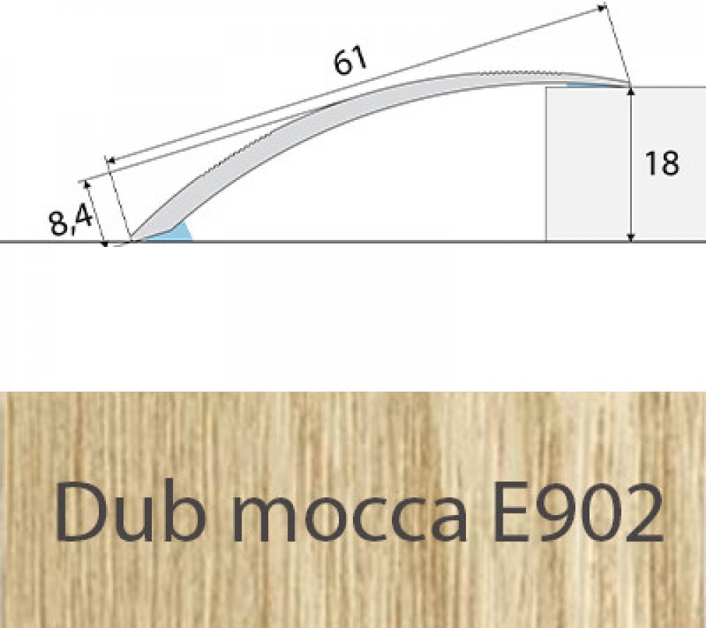 Přechodová lišta v šíři 61 mm je nejvyšší profil který překryje spáru u výškově nestejných podlah do 18 mm.