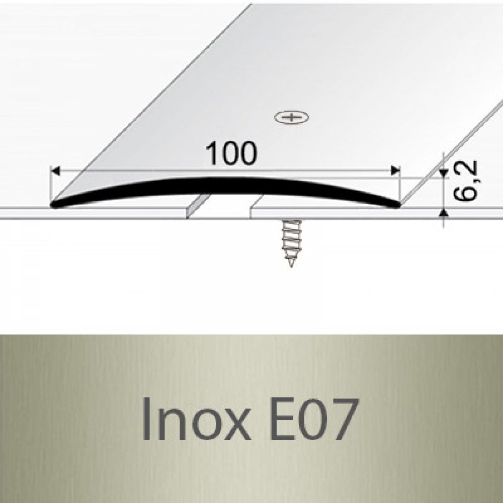 Eloxovaný hliníkový profil šroubovaný v šíři 100 mm je profil, který nahrazuje dřevěný práh nebo velkou spáru mezi krytinami.