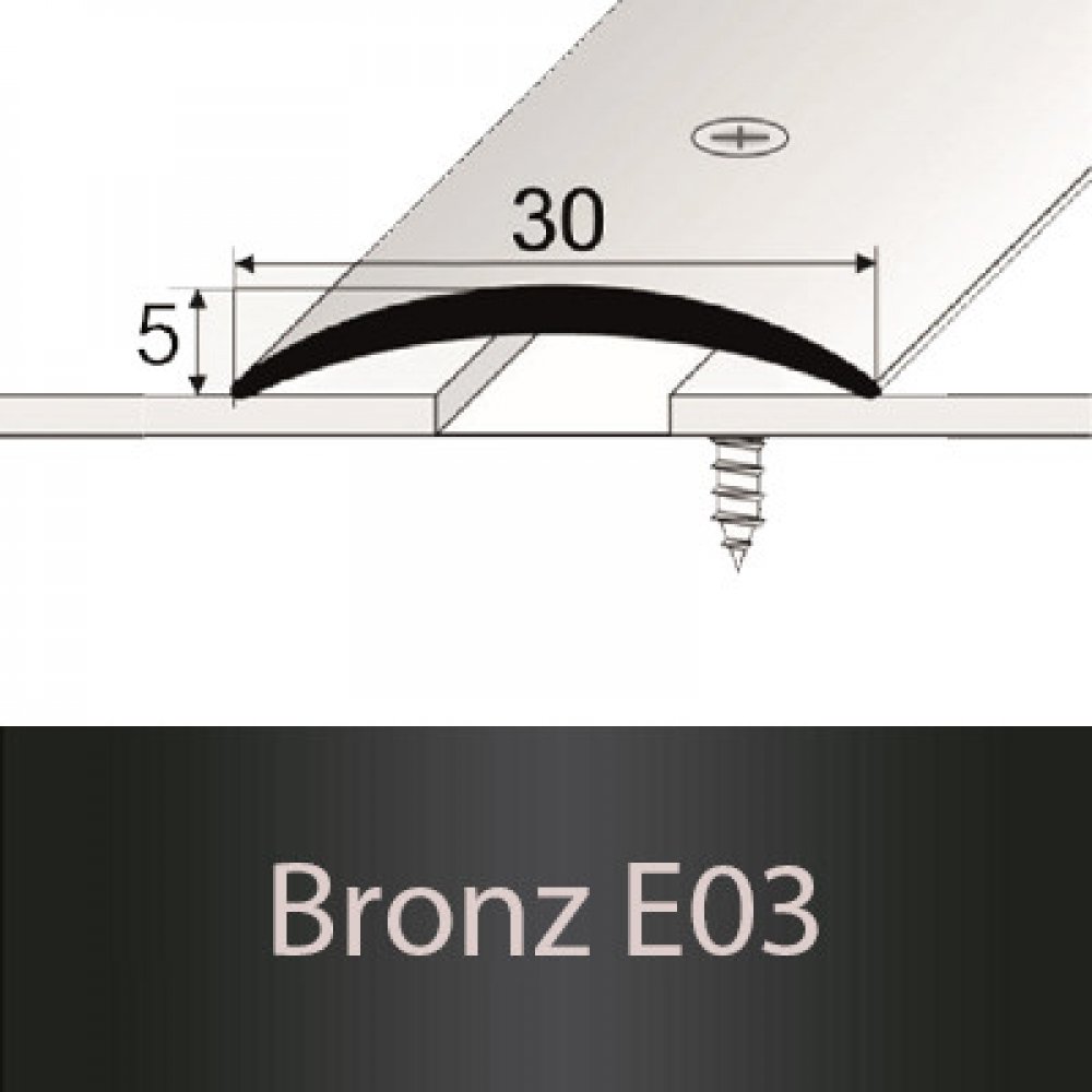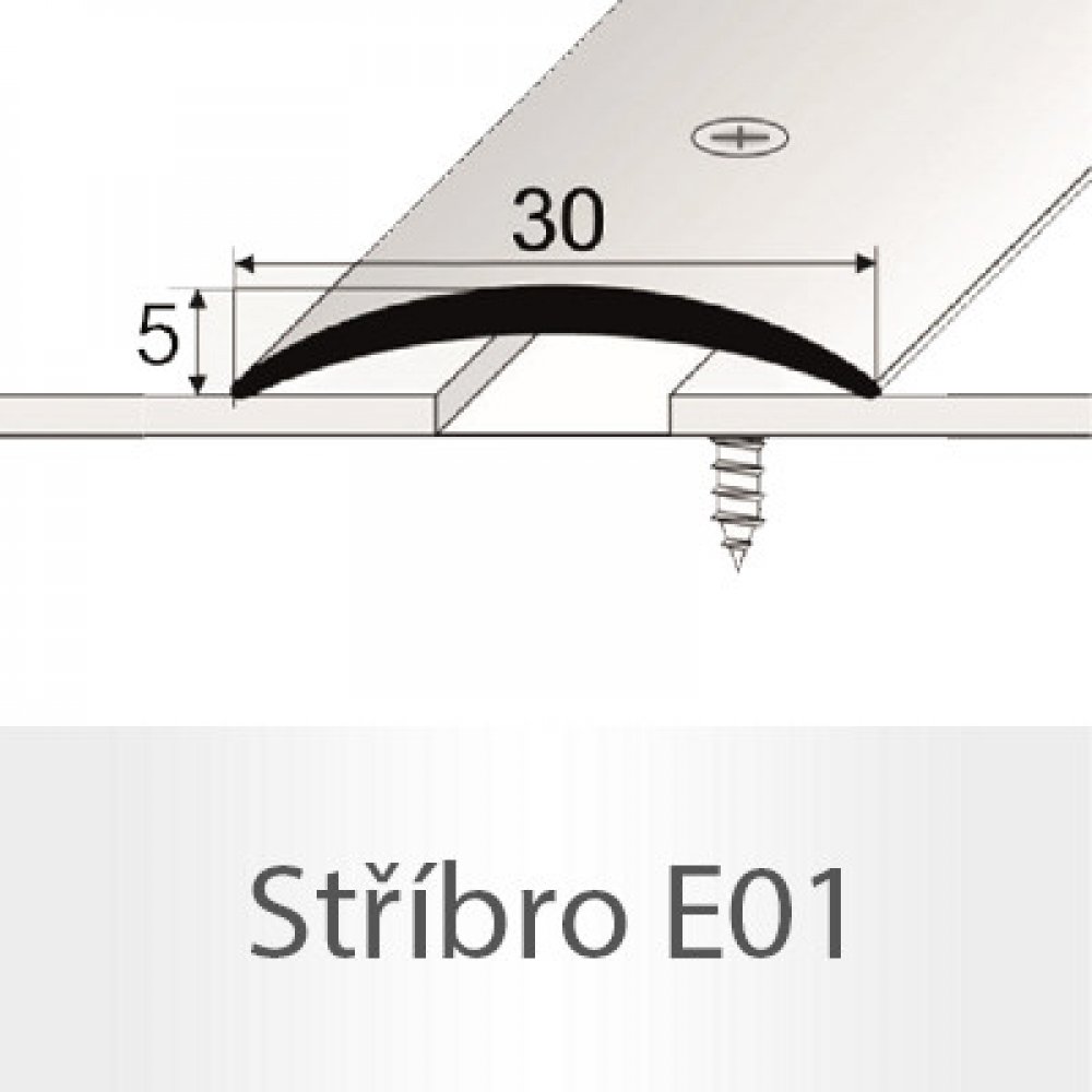 Přechodový profil hliník, eloxovaný o šířce 30 mm je určen pro spojení především měkkých krytin.