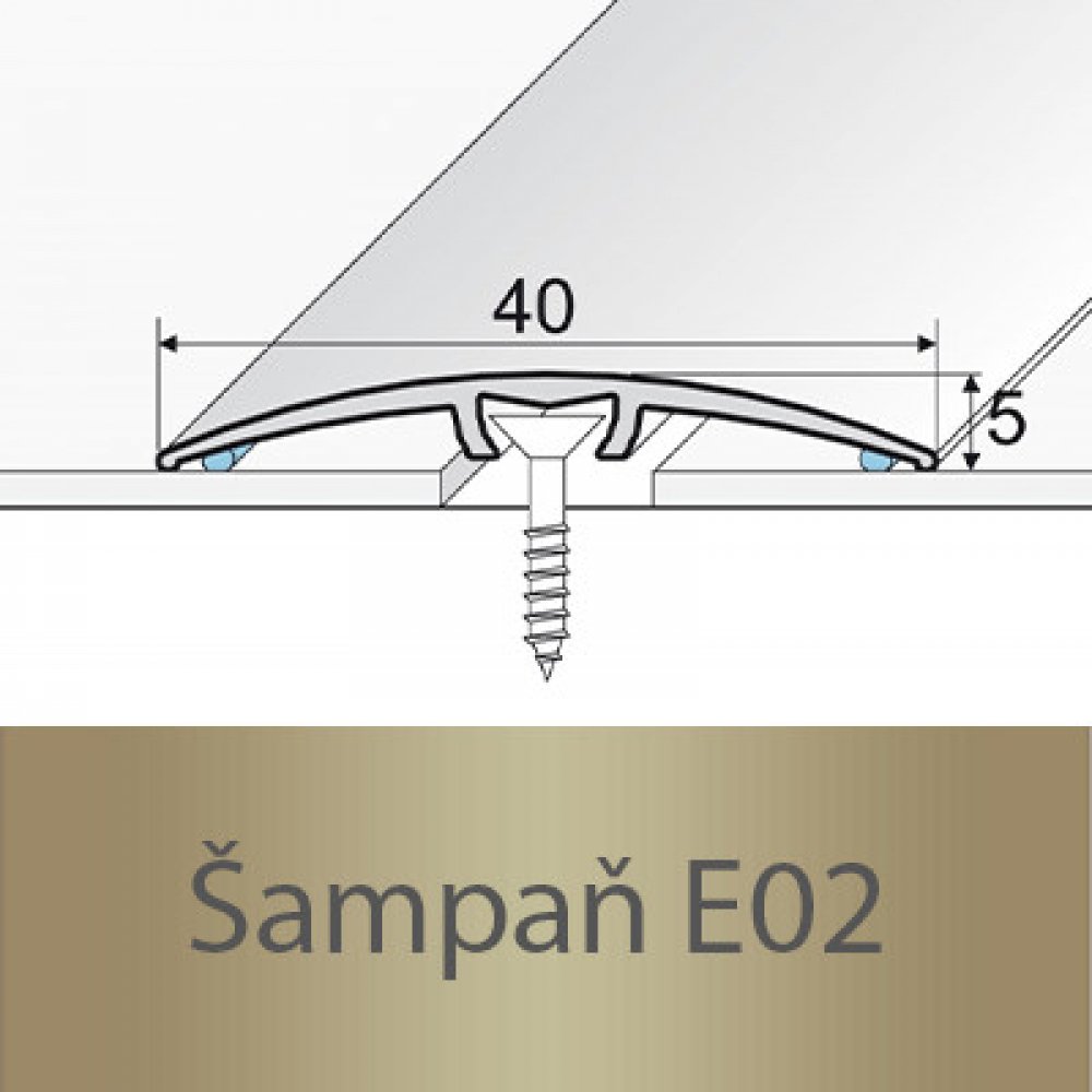 Přechodový profil hliník, eloxovaný o šířce 40 mm je určen pro spojení především měkkých krytin.