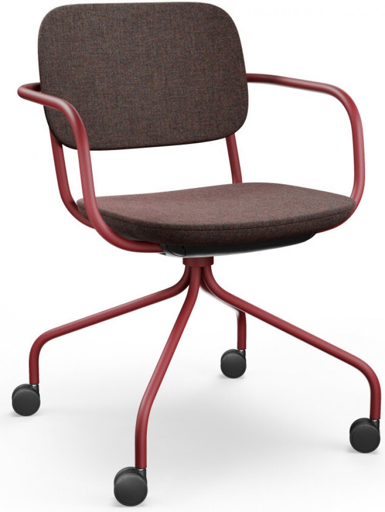 Konferenční židle NORMO je vhodná pro práci i meetingy. Normo je celočelouněná potahovou látkou z širokého výběru barev a materiálů. Židle je posazena na pavoukové trubkové kovové podnoži, která je k dispozici v různých barevných variantách. Pevná ocelová konstrukce, která zaručuje stabilitu nehledě na intenzitu používání, je doplněna univerzálními kolečky. Pohodlné sezení zaručí pěnový čalouněný sedák.Židle Normo je cirkulární produkt:korpus sedáku a opěráku je vyráběn ze 100% recyklovatelného plastužidle je jednoduše rozmontovatelná a je z 94% recyklovatelnácelá kolekce je vyráběna bez použití lepidel a sponekTato trendy židle školního designu ohromí hlavně svou lehkou kostrukcí a variabilitou provedení. Židle nabízí také kovové područky krátké nebo dlouhé.