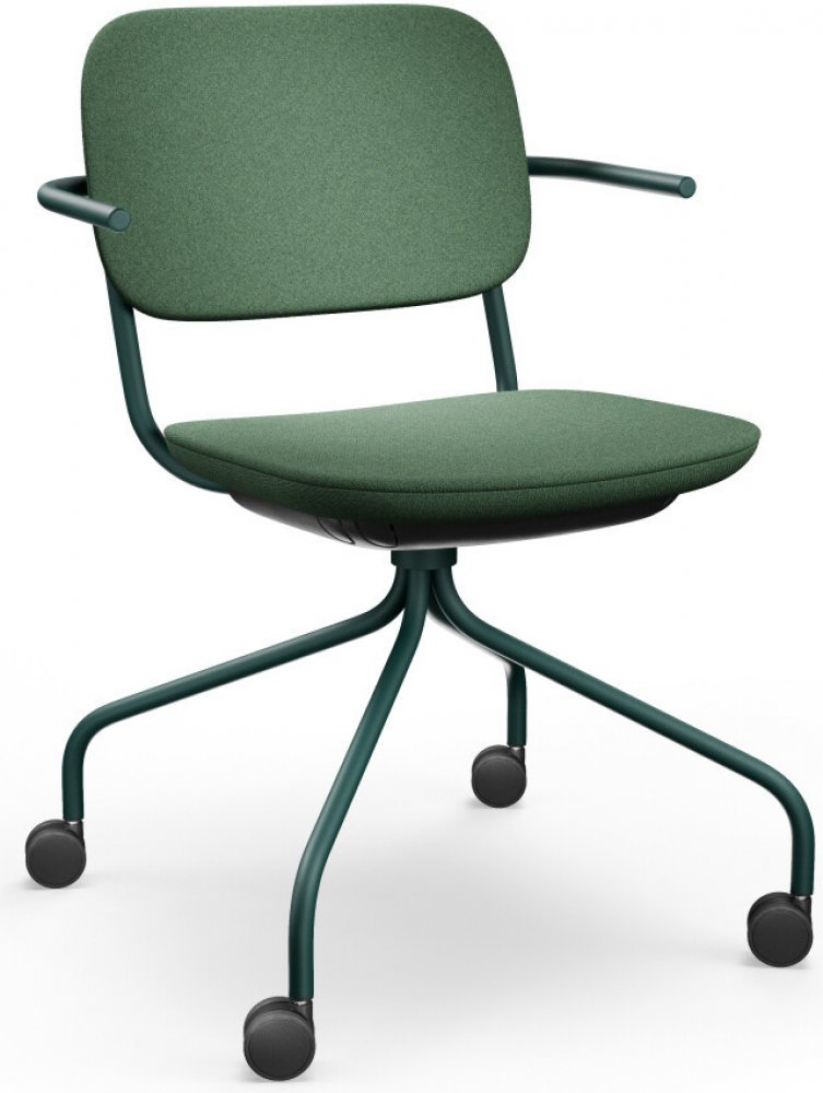 Konferenční židle NORMO je vhodná pro práci i meetingy. Normo je celočelouněná potahovou látkou z širokého výběru barev a materiálů. Židle je posazena na pavoukové trubkové kovové podnoži, která je k dispozici v různých barevných variantách. Pevná ocelová konstrukce, která zaručuje stabilitu nehledě na intenzitu používání, je doplněna univerzálními kolečky. Pohodlné sezení zaručí pěnový čalouněný sedák.Židle Normo je cirkulární produkt:korpus sedáku a opěráku je vyráběn ze 100% recyklovatelného plastužidle je jednoduše rozmontovatelná a je z 94% recyklovatelnácelá kolekce je vyráběna bez použití lepidel a sponekTato trendy židle školního designu ohromí hlavně svou lehkou kostrukcí a variabilitou provedení. Židle nabízí také kovové područky krátké nebo dlouhé.