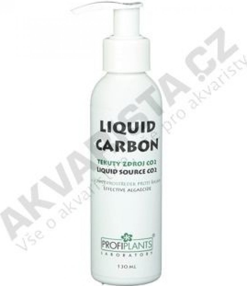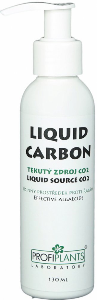 Rostliny jako jeden ze základních důležitých stavebních kamenů potřebují uhlík. Ten je z vodovodní vody odstraňován, proto je nutné ho pro dobrou kondici rostlin do akvária dodávat, a to již hned po zařízení akvária. Nejnovější studie prokázaly, že akvarijní rostliny rostou o 200 až 500% lépe při použití PROFIPLANTS LIQUID CARBON® (oproti růstu bez tohoto přípravku). Zároveň působí jako velmi účinný algicid - látka potlačující růst řas. Přidáváme jej denně, nejlépe vždy těsně před rozsvícením akvária, poločas rozpadu je kolem 11 hodin v závislosti na teplotě a proudění vody. Účinně působí na téměř všechny druhy řas, včetně snad nejhorší štětičkové řasy. Pokud již máte akvárium řasami napadené, tak nejlepších výsledků dosáhneme přímou aplikací na řasy. Vypneme filtr a všechny zdroje proudění vody. Když se voda uklidní, tak stříkačkou nabereme PROFIPLANTS LIQUID CARBON a postříkáme přímo ohniska řas, nejlépe ve 24 hodinových intervalech. Po 15 minutách filtry a zdroje proudění opět zapneme. Dalším osvědčeným způsobem je koupel kořenů, kamenů a mechů napadených řasami v roztoku mimo akvárium, což je několikanásobně účinnější způsob. Do misky nebo jiné vhodné nádoby dejte akvarijní vodu, přidejte na 1000 ml této vody 10 ml PROFIPLANTS LIQUID CARBON a v tomto roztoku nechte zařasený objekt 20 minut. Je vhodné nádobou pohybovat, aby se roztok dostal i na těžko přístupná místa. Po tomto čase je bez oplachu vraťte do akvária. U obou způsobů se před aplikací snažíme nejprve co nejvíce řas odstranit mechanicky. Při používání CO2 je žádoucí kombinace s tímto přípravkem, jelikož se vzájemně vhodně doplňují. Při aplikaci tohoto přípravku rostliny lépe porostou za předpokladu, že zvýšíte dávky hnojiva pro rostliny. Ty jelikož více porostou, potřebují vyšší přísun makro a mikroprvků. Tento přípravek lze kombinovat se všemi produkty značky PROFIPLANTS.