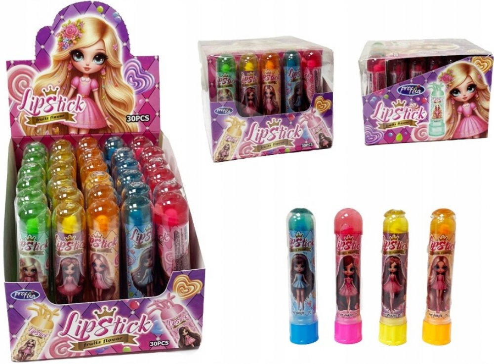Lip Stick – výjimečné lízátka v gelu s ovocnou příchutí v obalu připomínajícím rtěnku. V hromadném balení najdeme 30 kusů. Hmotnost hromadného balení 210 g