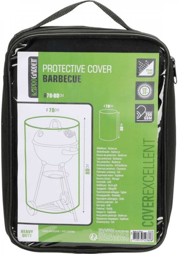 Kryt grilu ProGarden ideální pro ochranu před špínou, prachem, deštěm, sněhem a dalšími povětrnostními vlivy.Údaje o produktu: Pro kulaté grily o rozměrech 70 x 80 cm Materiál 600D POLYESTER Voděodolnost 2500 mm na metr čtvereční UV ochrana 30+ Hmotnost cca 760 g