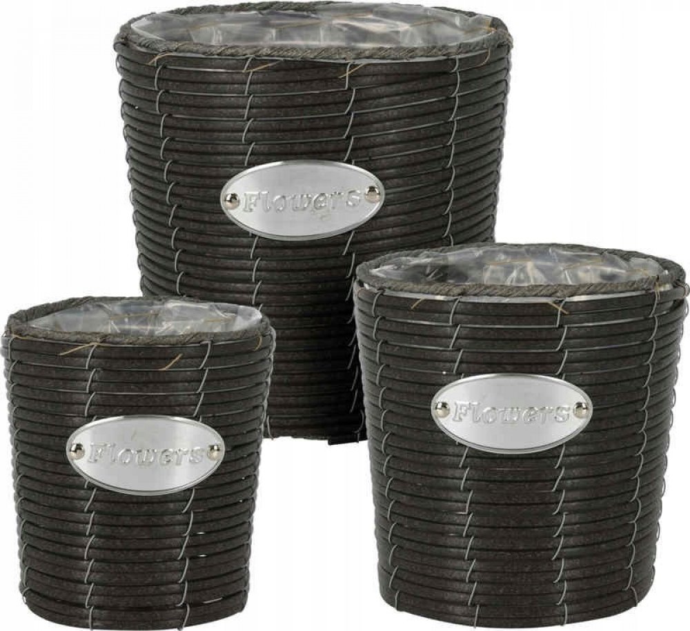Květináč proutěný sada 3 ks FLOWERS GARDEN 24 / 20 / 18 cm antracit