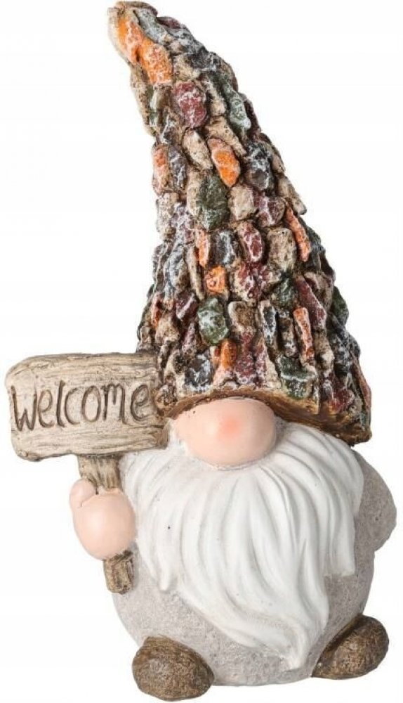 Tato roztomilá dekorace v podobě zahradního trpaslíka s cedulí "Welcome" je ideální pro přivítání hostů a dodá vašemu venkovnímu prostoru šarm a veselí.